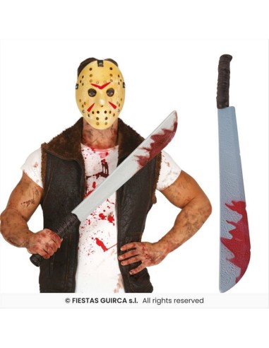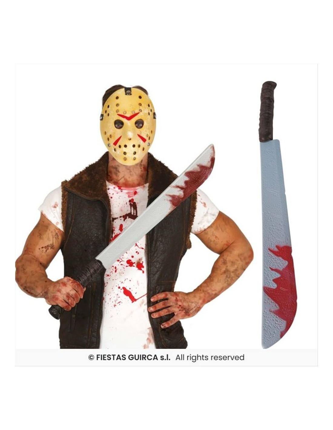 Aggiungi un tocco da film horror al tuo travestimento con il Macete Insanguinato 76cm in PVC 🔪🩸!