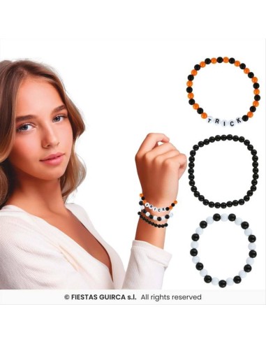 Set 3 bracciali TRICK con perline multicolore: divertenti, perfetti per look di Halloween!