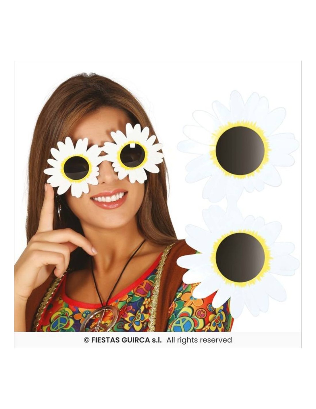 Il design con margherita maxi rende questi occhiali immediatamente protagonisti, perfetti per foto spiritose e outfit originali. Sono facili da indossare e adatti a grandi e piccoli, ideali come accessorio per costumi o semplicemente per animare una festa.