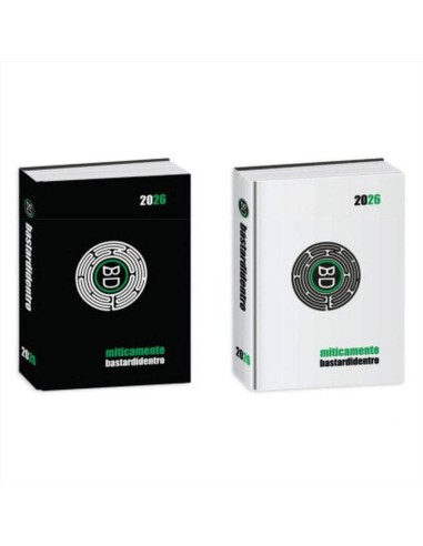 Ironico, compatto e inconfondibile! 😏 Diario 16 mesi Bastardi Dentro 2025/2026, formato 18,5x13,5 cm. In bianco o nero, per veri sarcastici da zaino!
