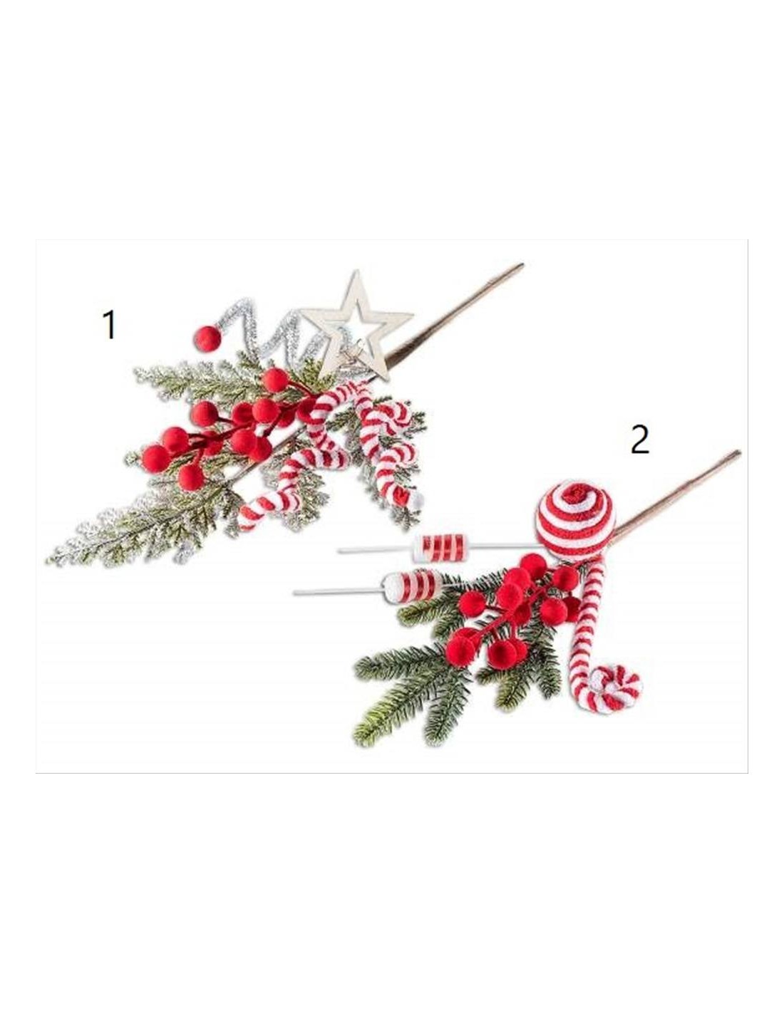 Decora con dolcezza! 🎄🍭 Rametto di pino con bacche, bastoncini di zucchero e dettagli natalizi per un'atmosfera festiva irresistibile!