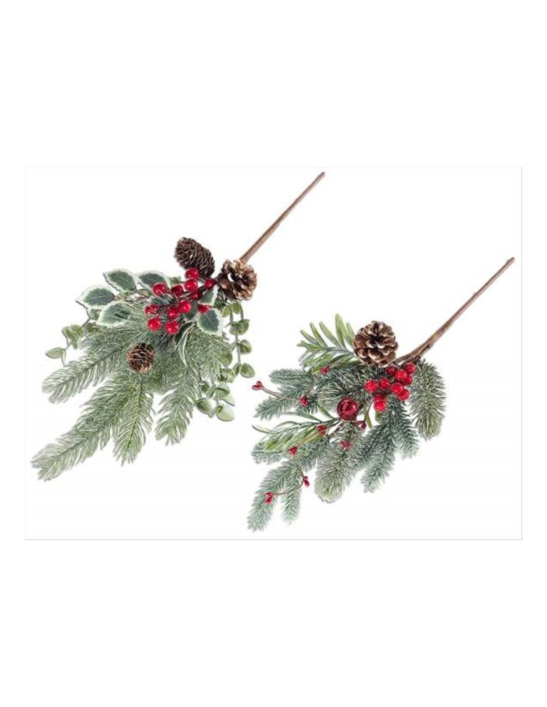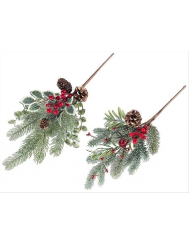 Ramo natalizio di pino innevato con bacche/pigne H49cm - 2 varianti