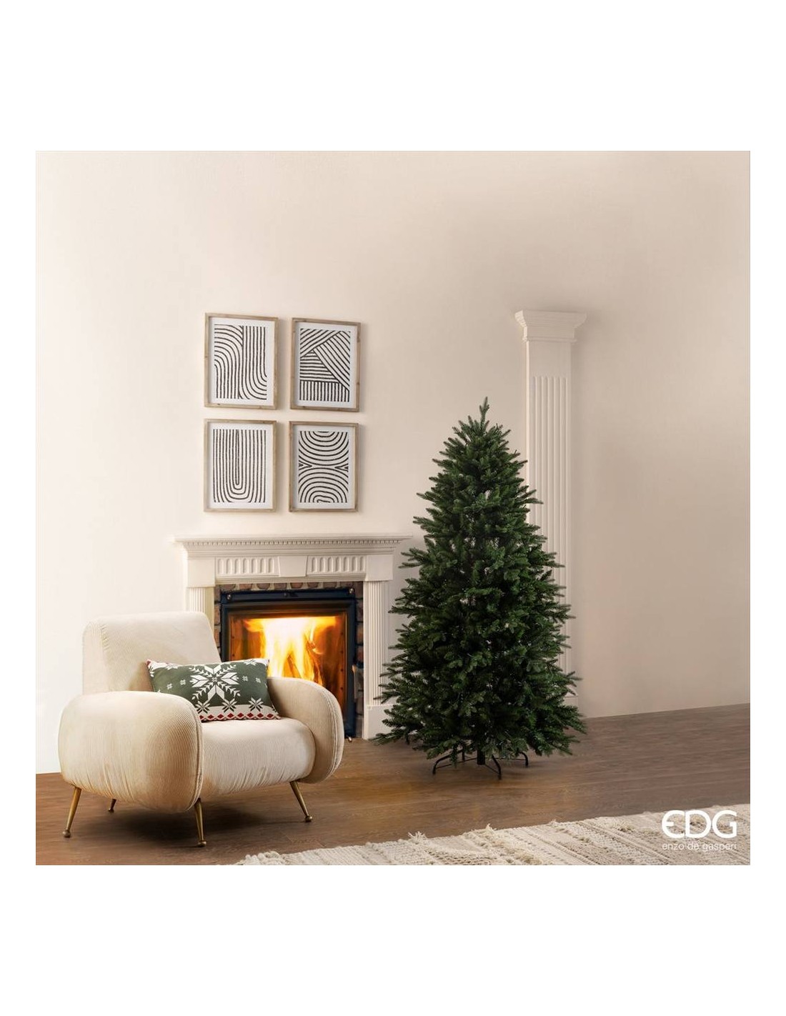 Realizzato con una combinazione di rami in PE e PVC, alterna aghi rigidi e realistici a quelli più morbidi e fitti, dando vita a una chioma densa e naturale che richiama i pini di montagna innevati. Ogni dettaglio è curato con la maestria e l’eleganza che contraddistinguono EDG, rendendo questo albero un autentico simbolo di stile e qualità.