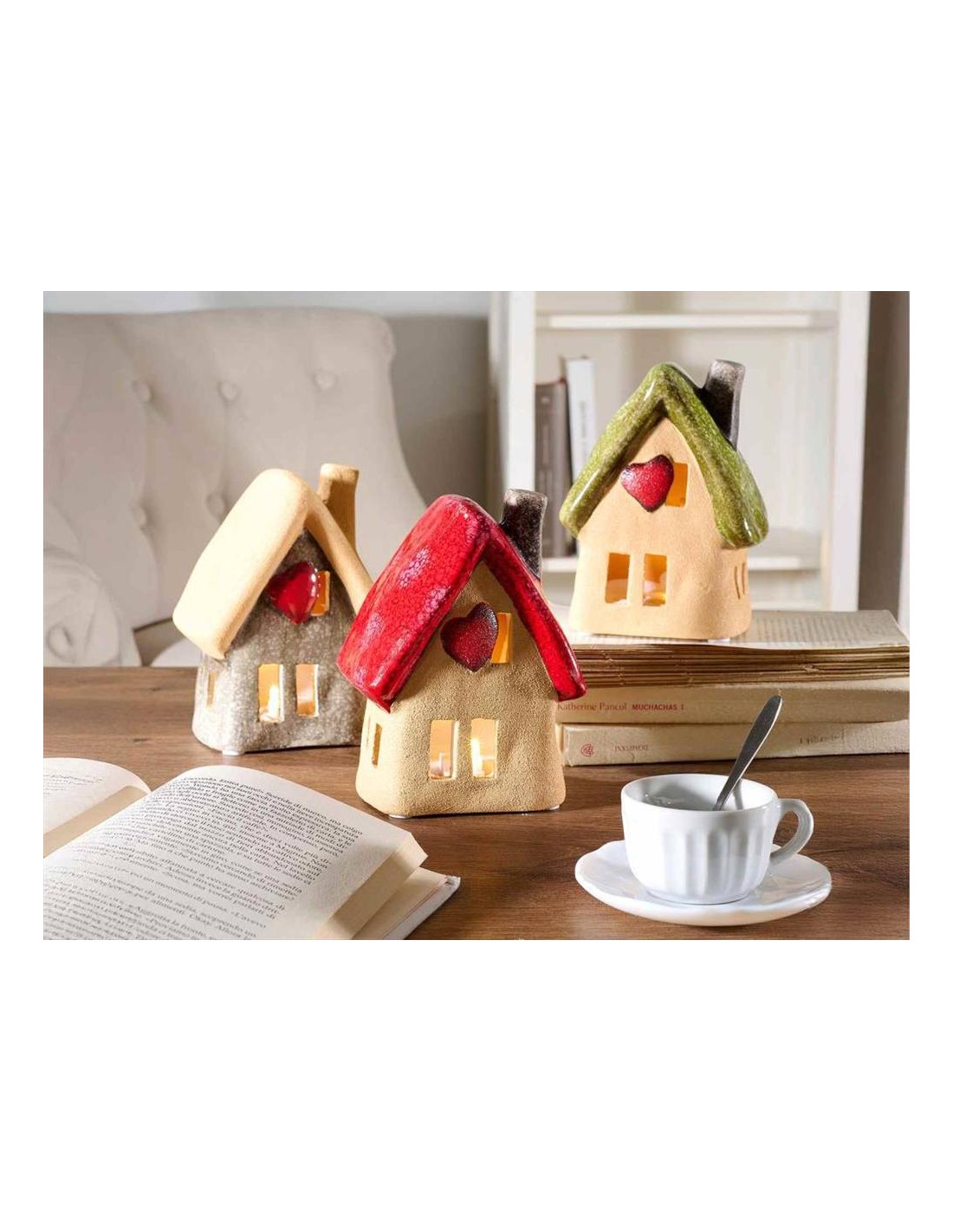 Disponibile in tre varianti di colore (rosso, beige e verde), questa casetta decorativa misura 12x9x16 cm ed è arricchita da dettagli lucidi e un dolce cuoricino che dona un tocco romantico.
