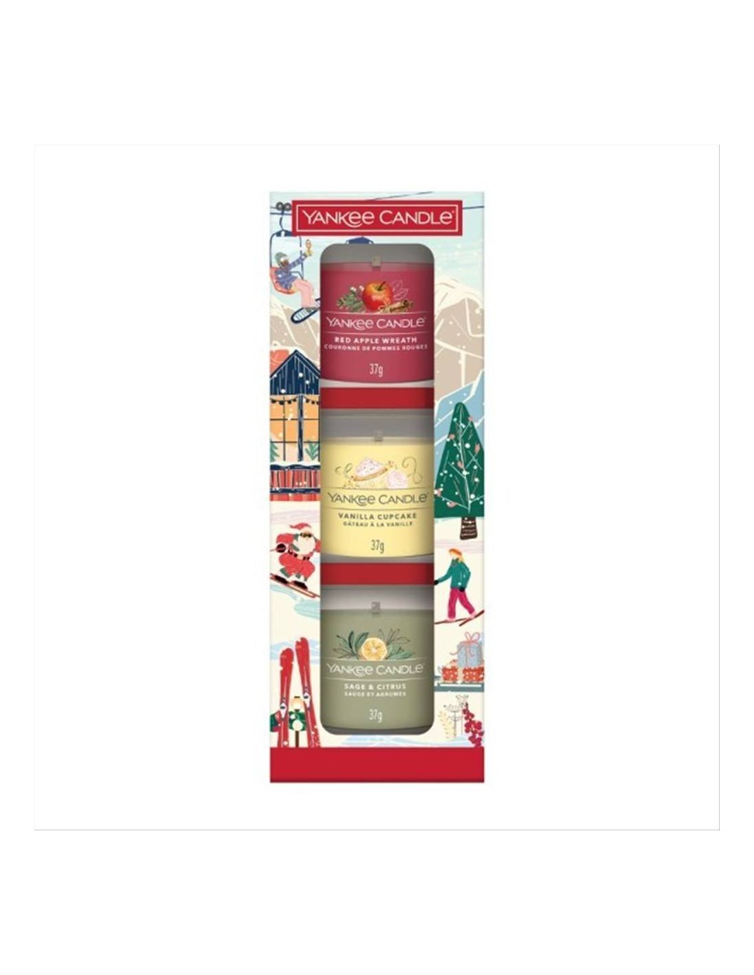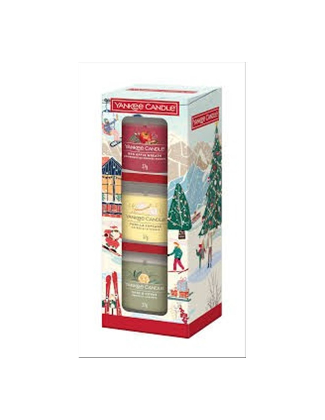 🌟 Contiene 3 votive da 37g con profumazioni natalizie assortite (Red Apple Wreath, Vanilla cupcake e Sage & Citrus).
