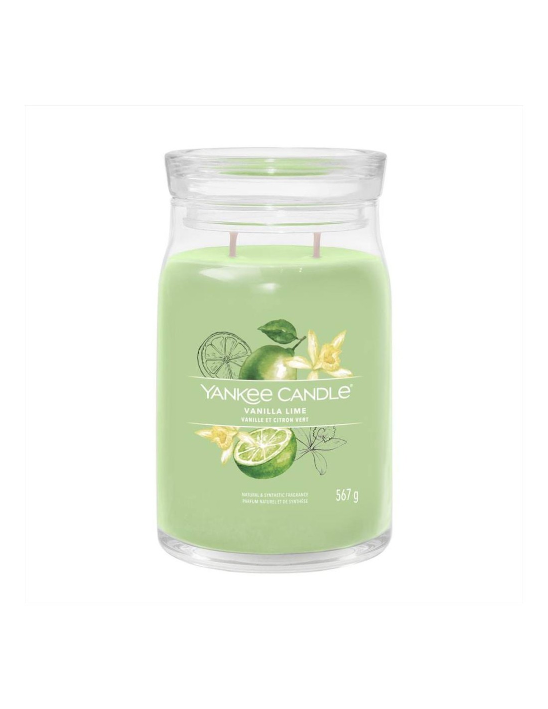 Lasciati conquistare dal contrasto perfetto della Yankee Candle Signature Vanilla Lime Giara Grande 567 g 🍋 Una fragranza fresca e cremosa che combina la dolcezza avvolgente della vaniglia con la vivacità agrumata del lime, creando un profumo equilibrato e raffinato.