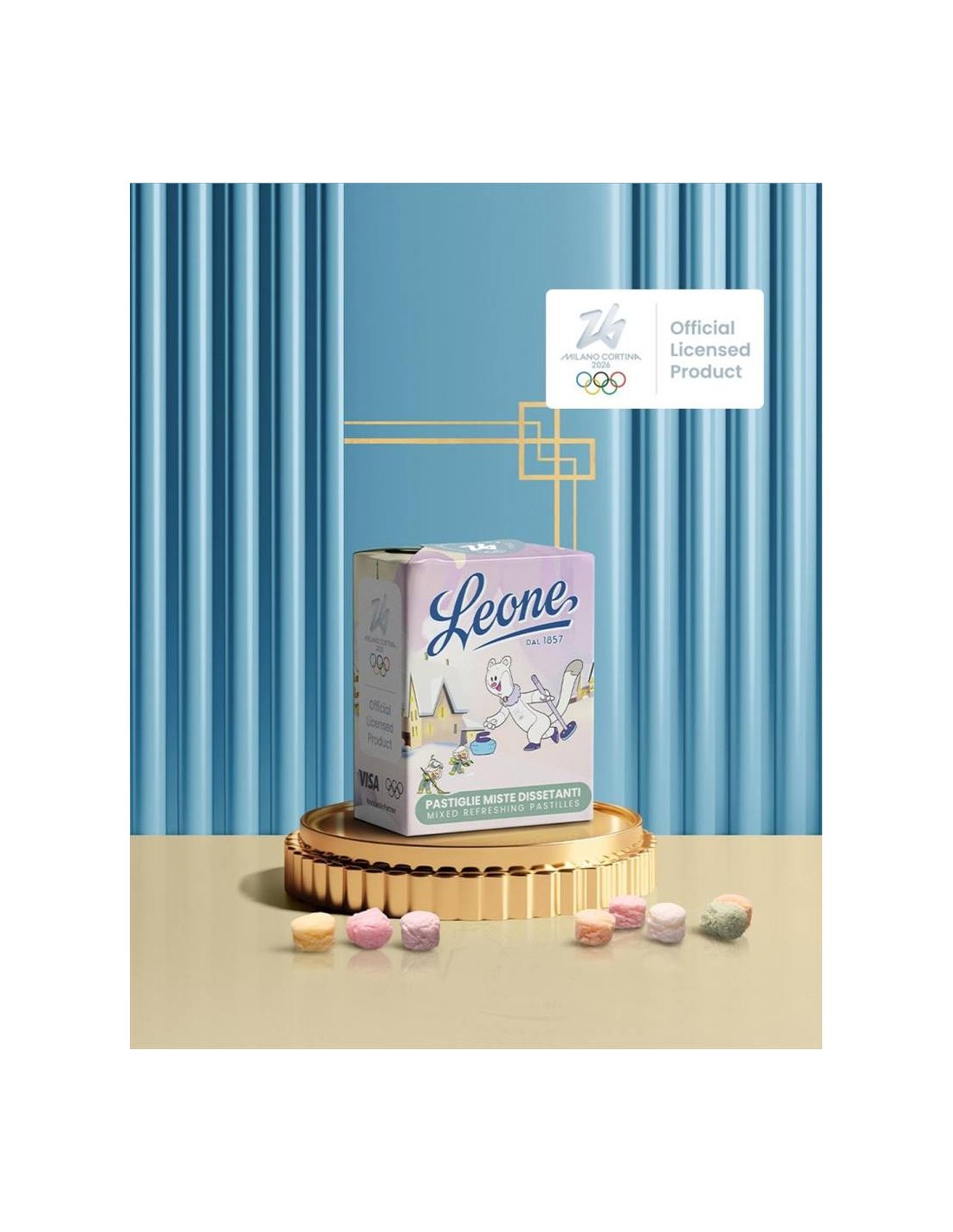 Le Pastiglie Cortina Olimpiadi 2026 Leone celebrano lo