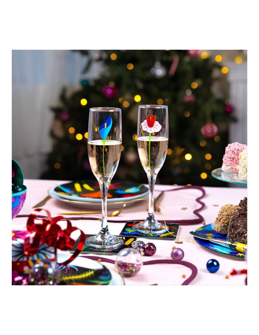 Ogni calice è decorato con un fiore diverso, così ognuno può riconoscere il proprio bicchiere in modo semplice e divertente. Perfetti per cene tra amici, aperitivi festosi, compleanni e brindisi improvvisati che meritano un tocco in più ✨