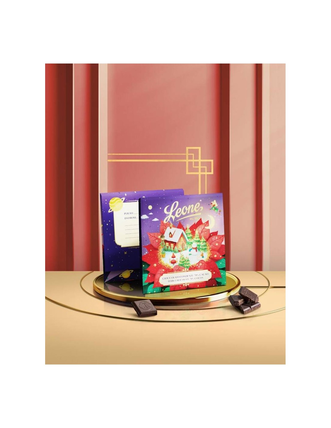 Un biglietto che sprigiona gusto e magia! Scrivi il tuo augurio e regala la tavoletta fondente Boule de Neige Leone 🎁✨