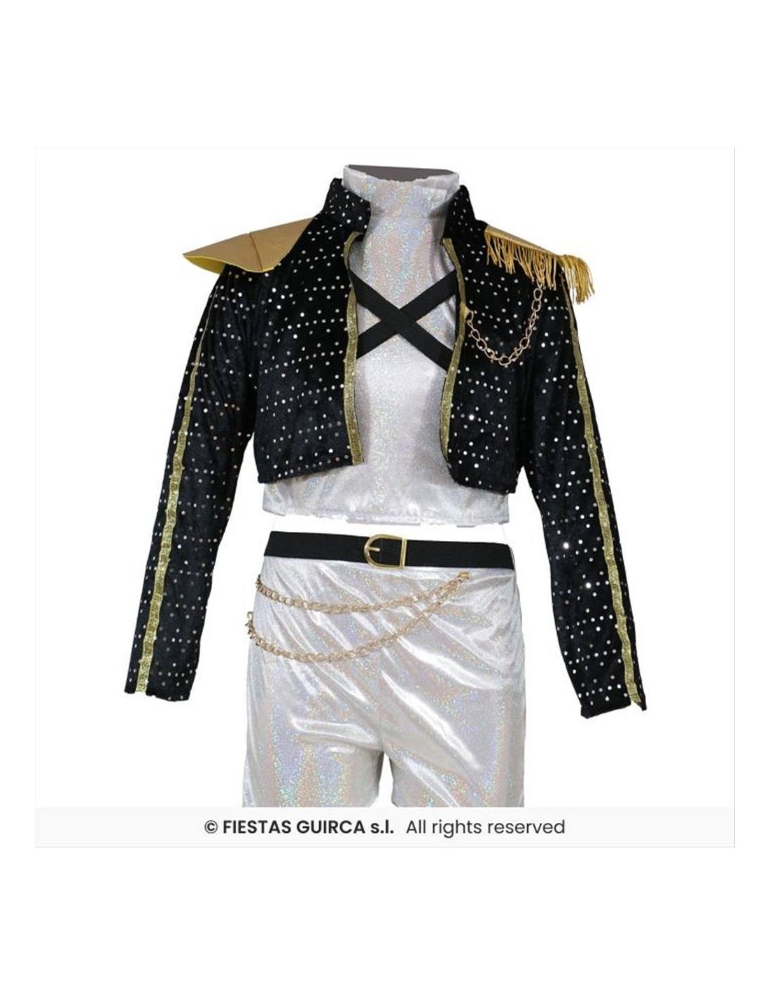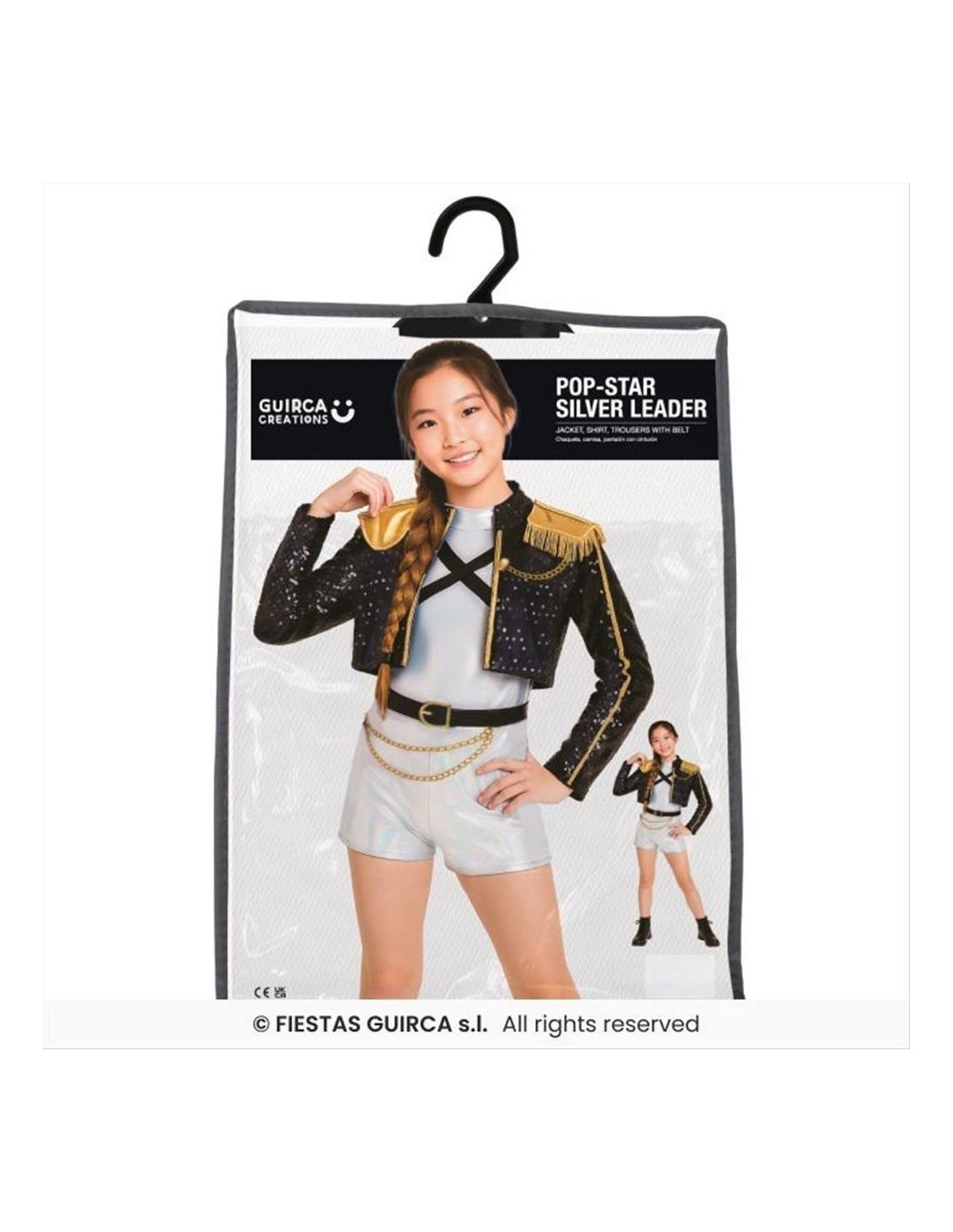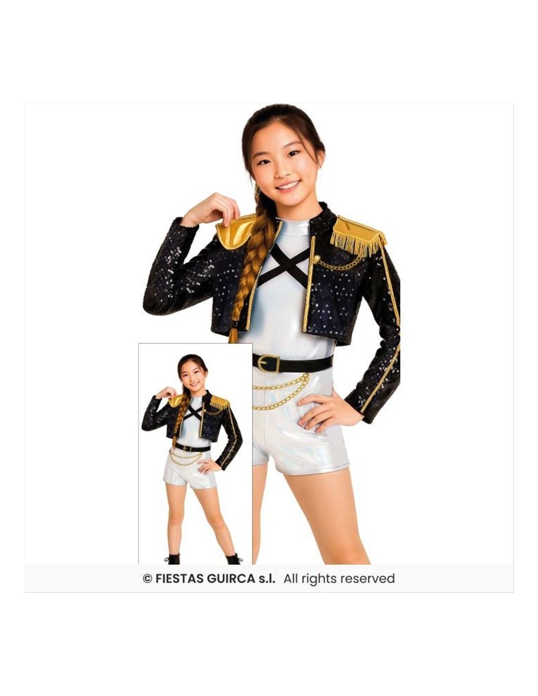Pensato per bambine, è disponibile in 3 taglie, così da adattarsi a diverse fasce d’età. Il look Golden richiama un’estetica moderna e accattivante, perfetta per chi vuole distinguersi sul palco o durante una festa in maschera.