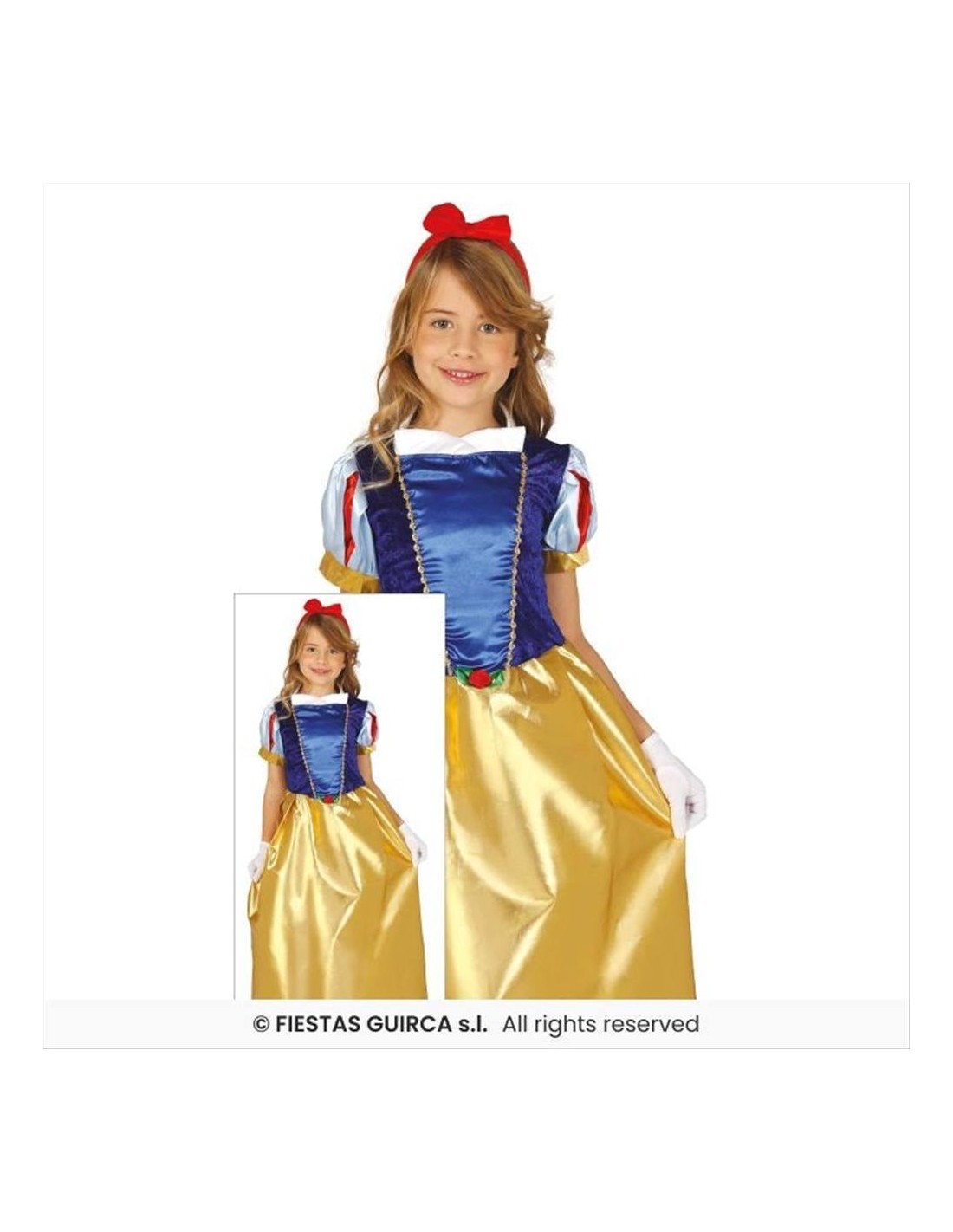Costume Biancaneve per bambina. Disponibile in 4 taglie, ideale per Carnevale e feste a tema.