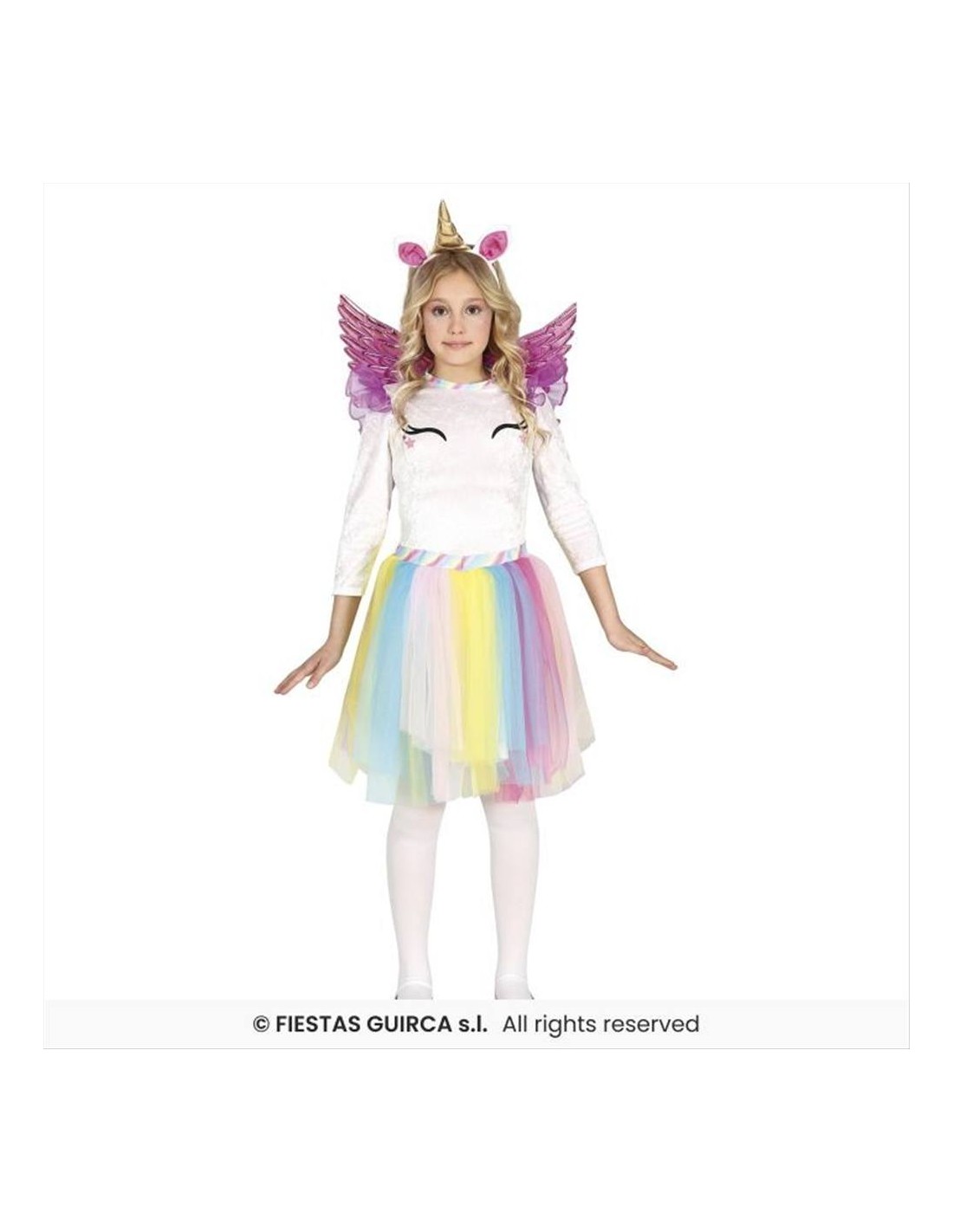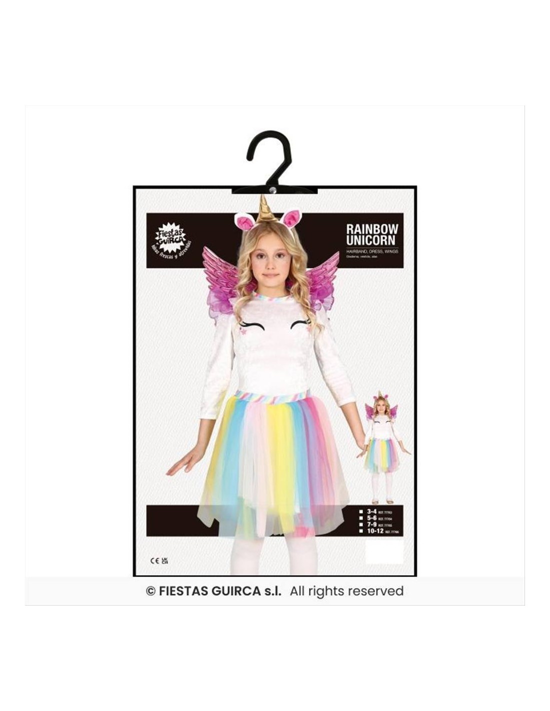 Costume unicorno arcobaleno per bambina. Disponibile in 4 taglie, colorato e super magico.