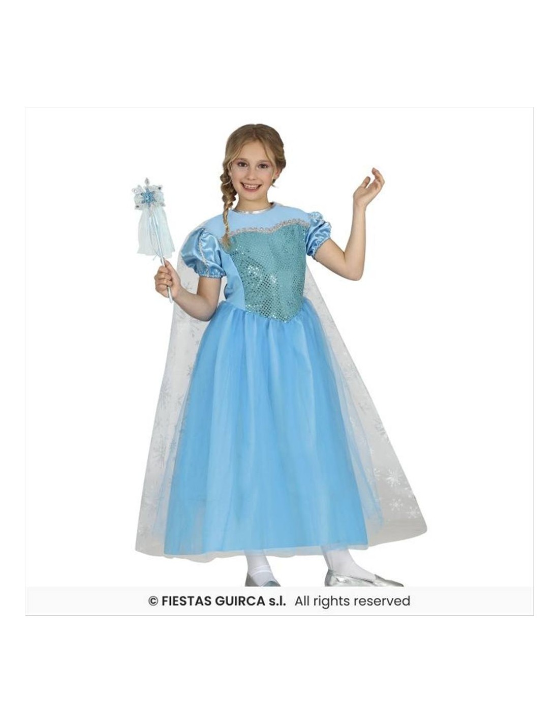 Il design richiama l’estetica delle principesse dei regni di ghiaccio, con uno stile luminoso e fiabesco che rende il costume immediatamente riconoscibile. Pensato per offrire comfort e libertà di movimento, permette alle bambine di giocare e divertirsi senza rinunciare all’eleganza.