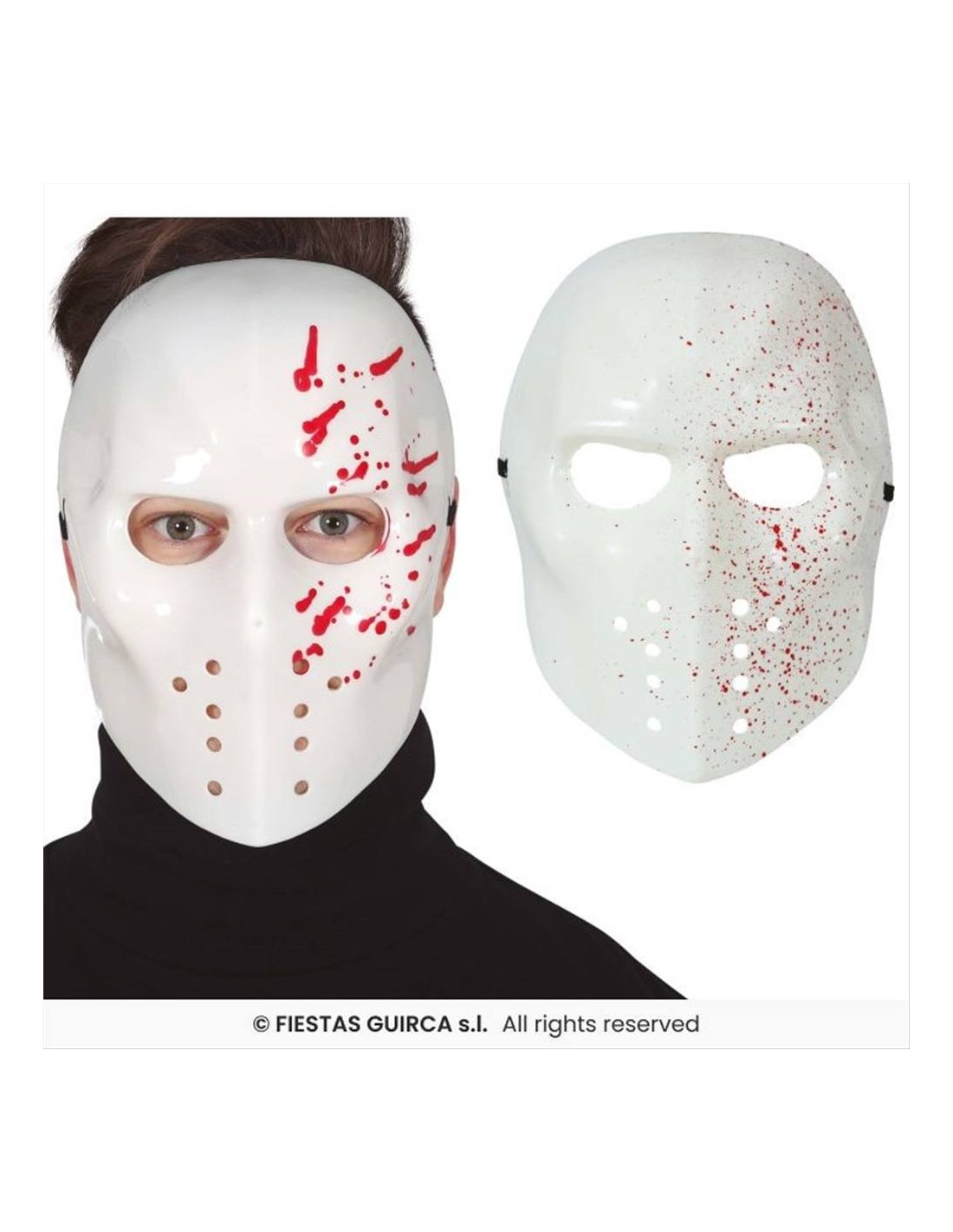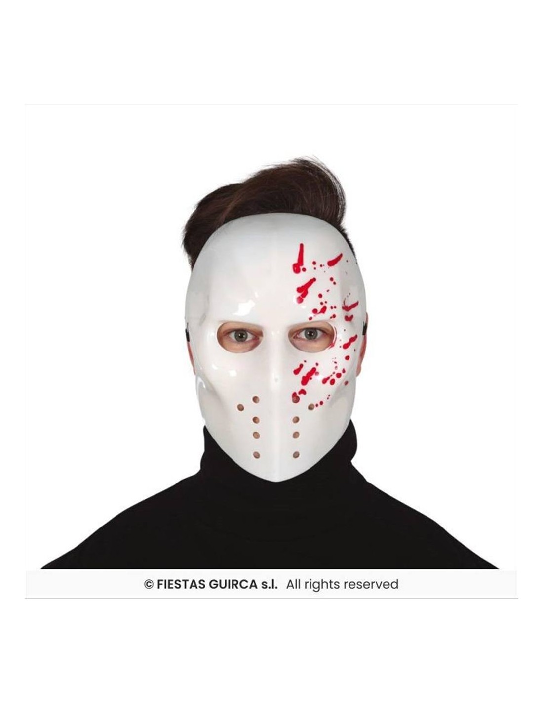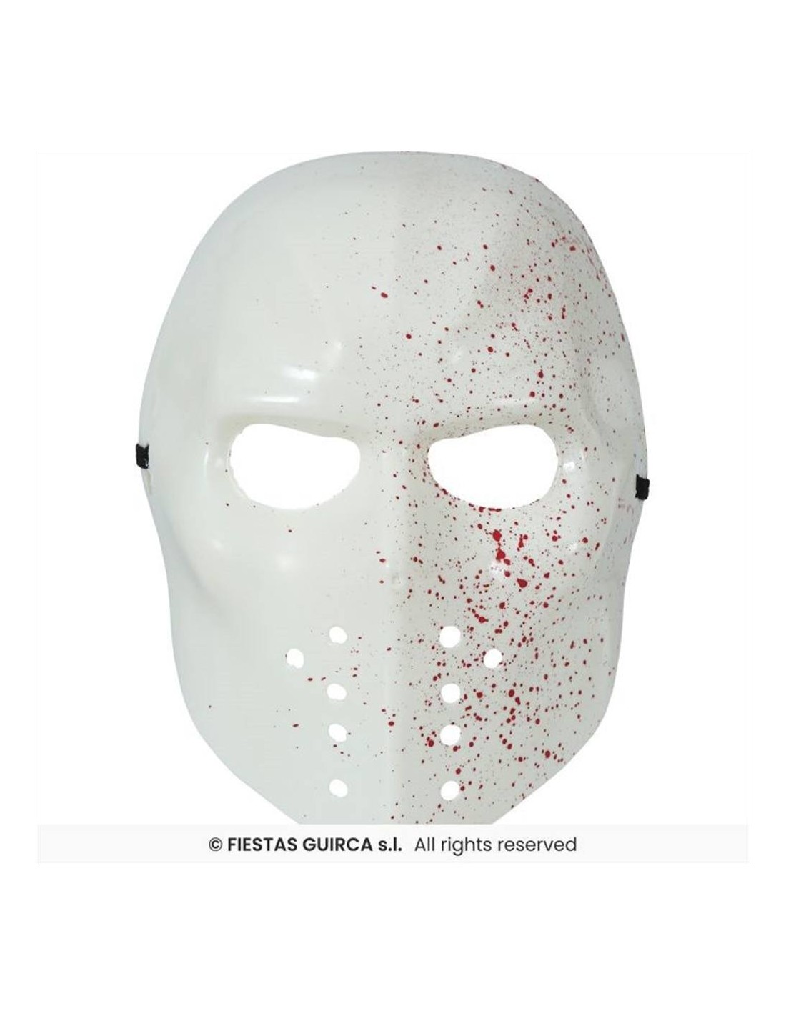 Crea un effetto da brividi con la Maschera Hockey Bianca con Sangue PVC 🎭🩸!