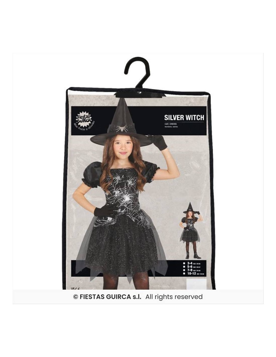 Trasforma la tua bambina in una streghetta elegante e misteriosa con il Costume Strega Argento/Nero!