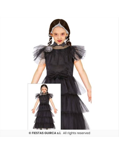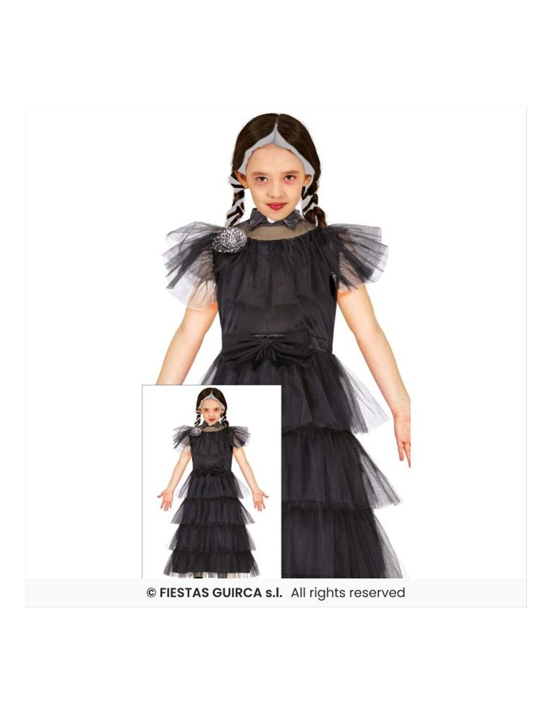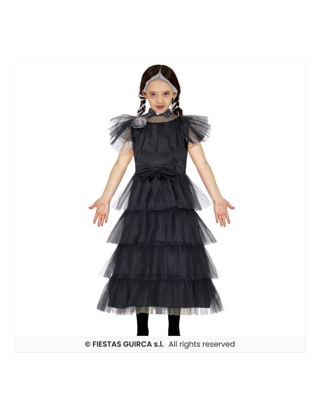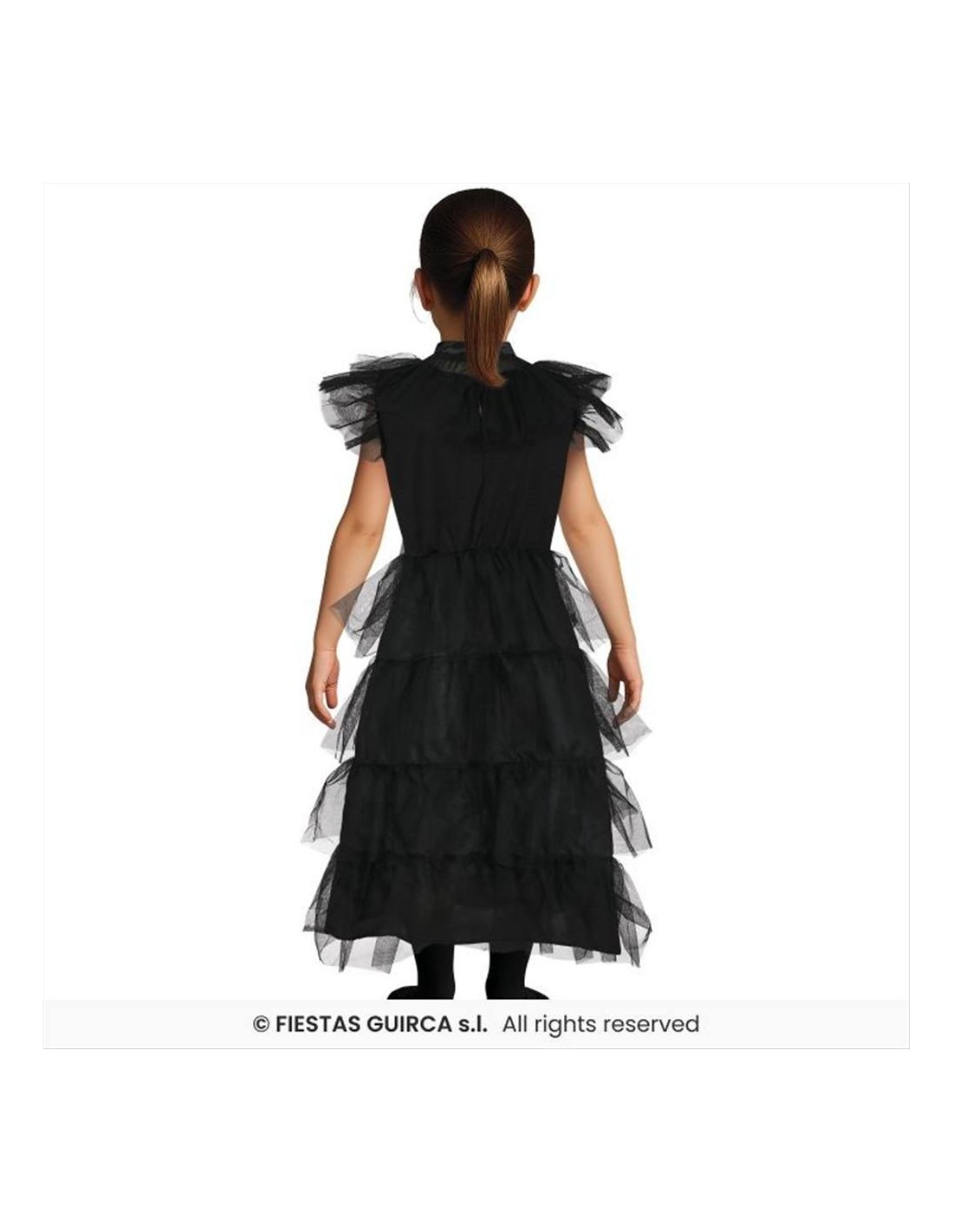 Costume Mercoledì Addams da ballo per bambina, con abito in tulle nero. Taglie 5-12 anni.