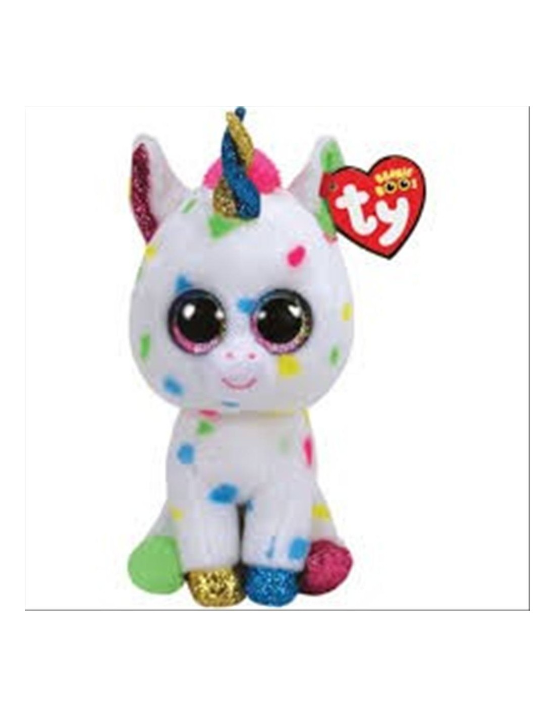 Scopri Harmonie, il tenerissimo unicorno Ty Beanie Boo’s da 15 cm, pronto a portare un’esplosione di colori nella tua vita! Con il suo soffice mantello bianco punteggiato di macchie arcobaleno, il corno dorato scintillante e gli occhi rosa brillanti, Harmonie incanta grandi e piccini.