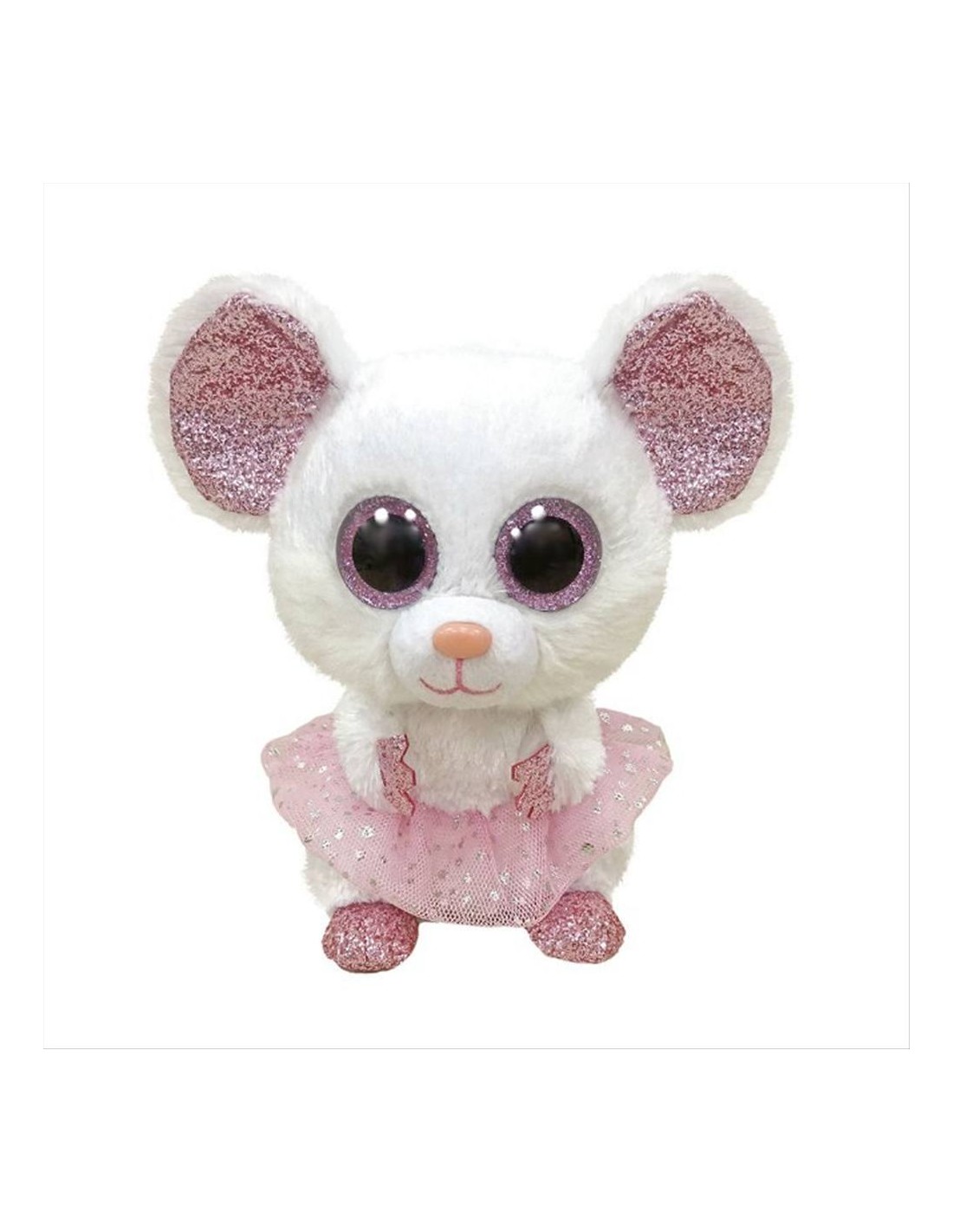 Nina, la topolina più tenera della famiglia Ty Beanie Boo’s, conquista tutti con il suo pelo bianco candido, le orecchie glitterate rosa e i suoi occhi rosa scintillanti.