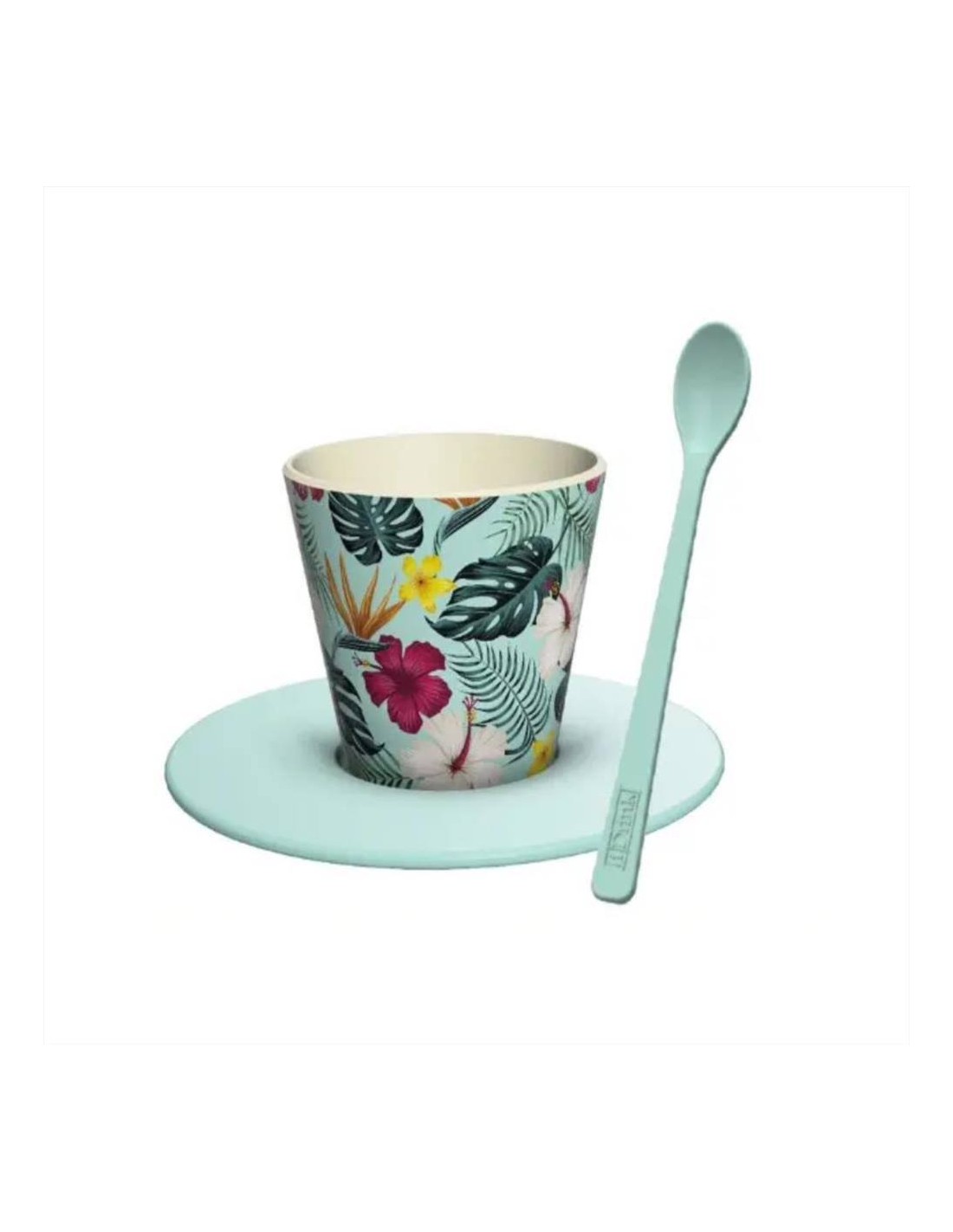🌴☕✨ Porta un tocco di energia esotica nelle tue pause con il Set Tazzina Espresso TROPICAL VIBES iTotal 90 ml con Cucchiaino e Piattino!