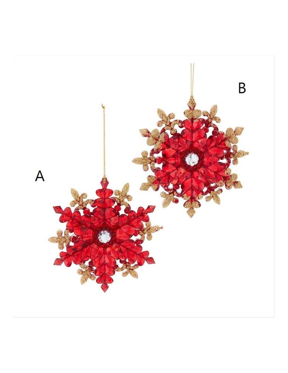 Decorazione 3D Fiocco di neve glitter Oro/Rosso H12cm - 2 varianti (1pz)
