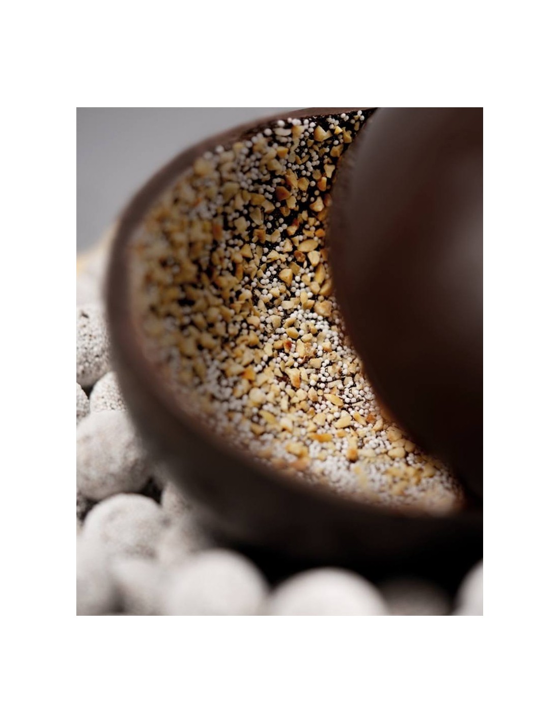 UOVO DI CIOCCOLATO FONDENTE CON GRANELLA NOCCIOLA E DI ZUCCHERO Ingredienti: cioccolato fondente 70% cacao min. -84.3% (pasta e fave di cacao, zucchero grezzo di canna, burro di cacao), granella di Nocciola Piemonte IGP (11%), mompariglia (5.7%) (zucchero, amido di riso, sciroppo di glucosio). Contiene nocciola. Può contenere latte, soia e altra frutta a guscio