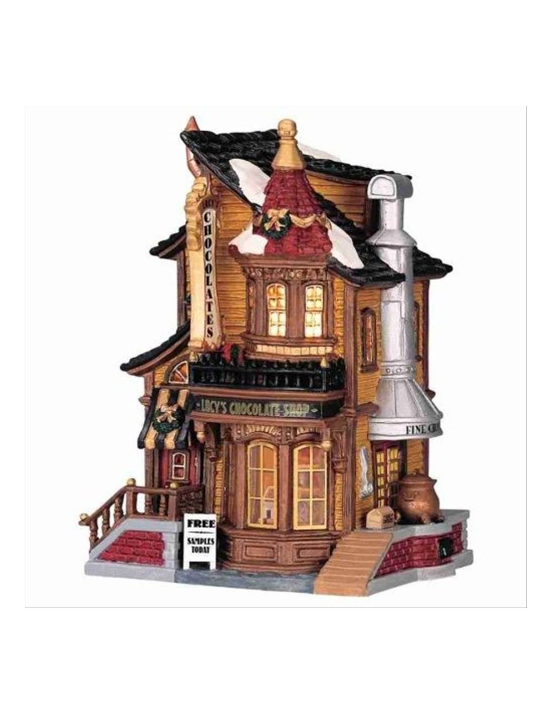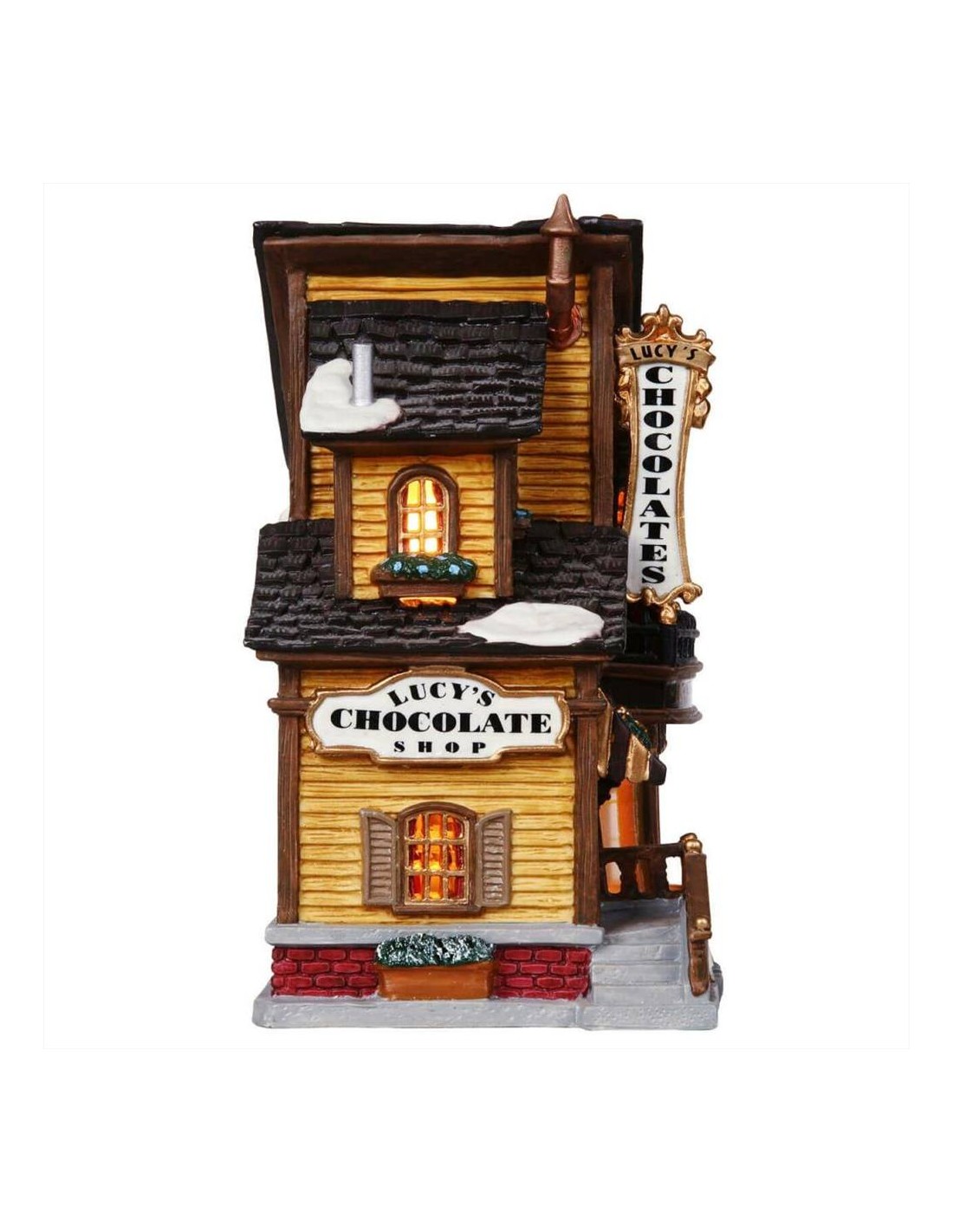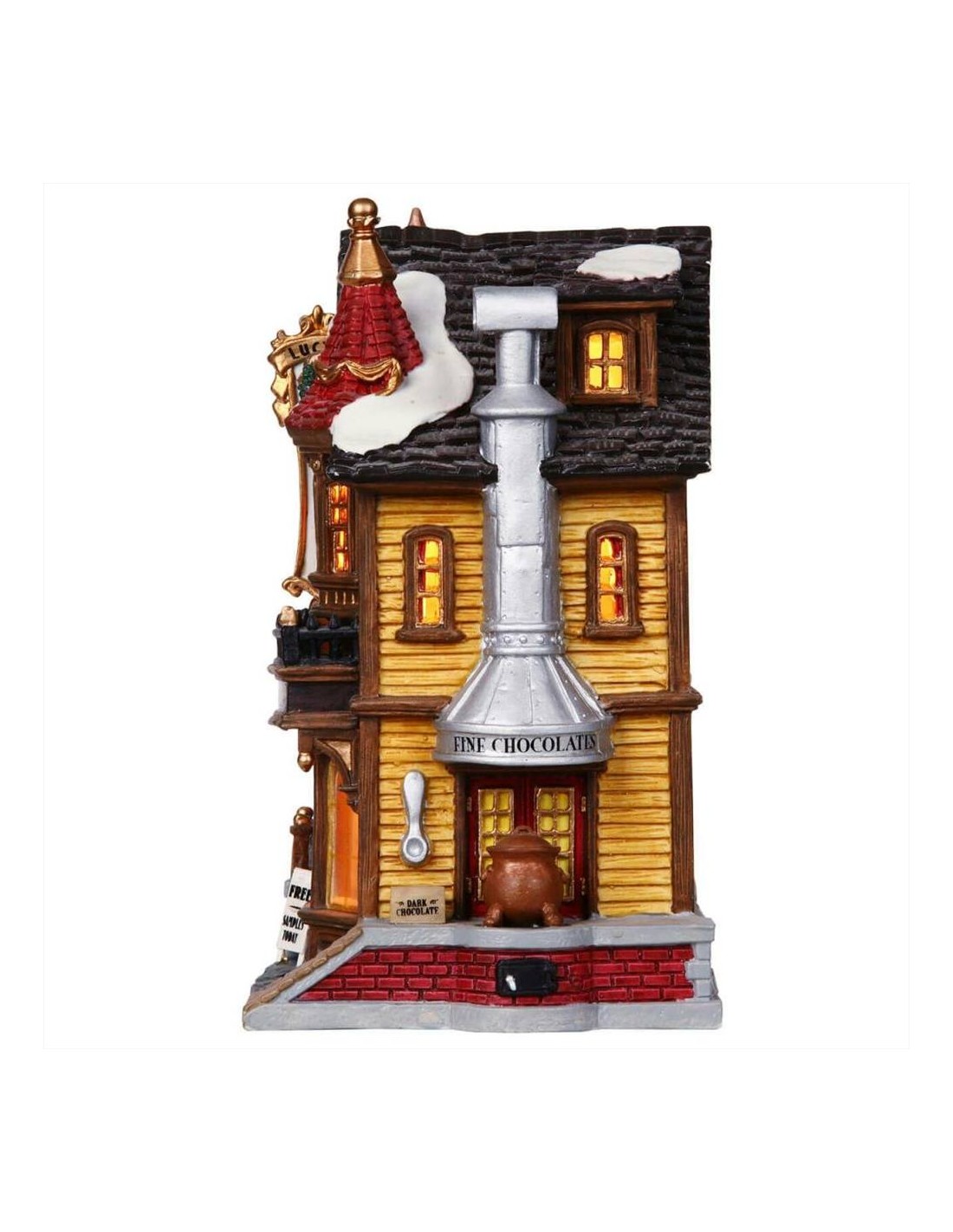 Con il suo esterno marrone simile al cioccolato, la Cioccolateria di Lucy è perfetta per gustare una buonissima cioccolata artigianale. Il fumaiolo argentato, i mattoni rosso scuro e le finestre ben illuminate accentuano il suo stile unico, facendola risaltare tra gli edifici del villaggio.