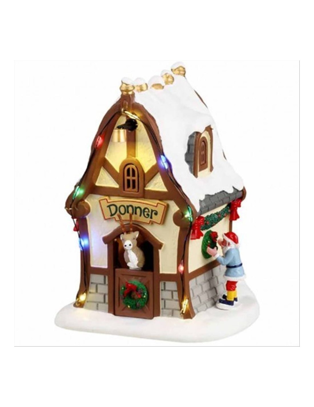 Scopri Donner's Den, la meravigliosa casa di Donner, una delle renne di Babbo Natale! Questa scena natalizia in resina, con dimensioni di 13,7 x 10,2 x 8,7 cm, è arricchita da una lucente illuminazione che porta calore e magia al tuo villaggio. Dotata di interruttore on/off per la luce, puoi illuminare la dimora di Donner e aggiungere un tocco festivo alla tua esposizione natalizia. Funziona con un adattatore Lemax (non incluso), rendendo questo accento da tavolo un'aggiunta incantevole e luminosa alle tue decorazioni. 🌟🦌🔌
