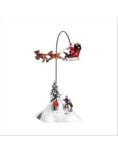 decorazione animata, Babbo Natale sfreccia nei cieli sopra le case del tuo