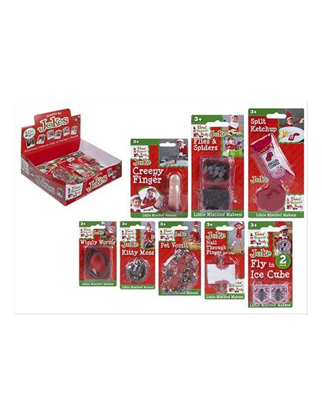Scherzi Degli Elfi Assortiti: vermi, mosche nel cubetto di ghiaccio, vomito, mosche e ragni, cacca, benda insanguinata per dito, dito mozzato, ketchup schiacciato.
