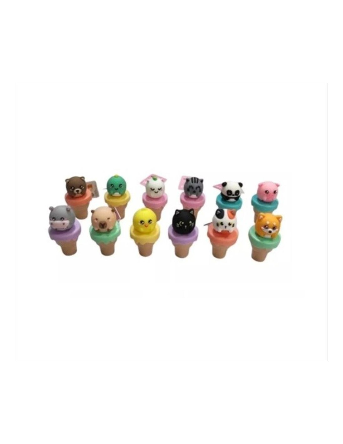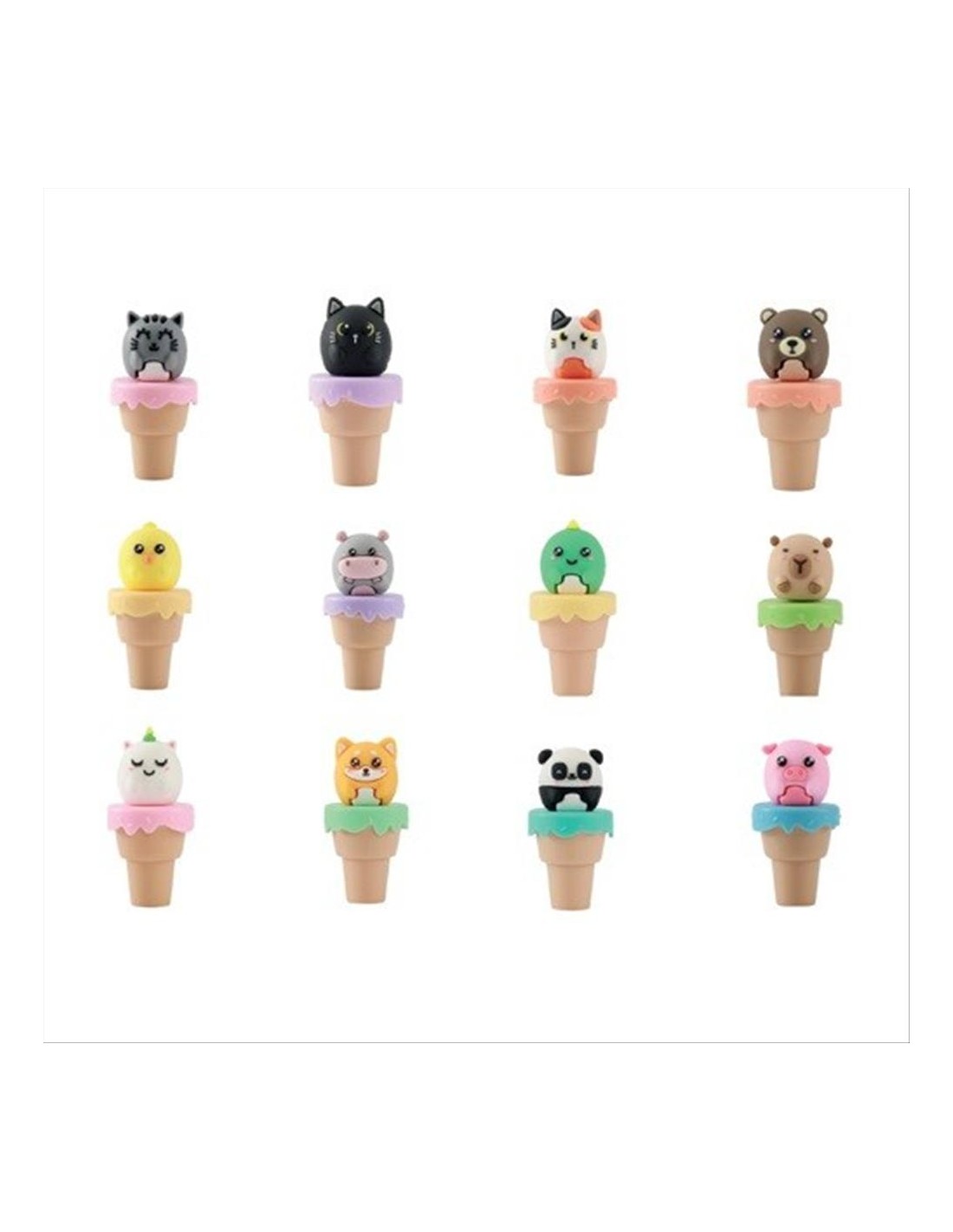 Disponibile in 12 varianti adorabili – panda, maialino, pulcino, dinosauro, ippopotamo, gatto nero, orsetto, gatto arancione tricolore, capybara, shiba inu, gatto grigio e unicorno – ognuno è composto da una base a cono e un cappuccio removibile a forma di animaletto super cute.