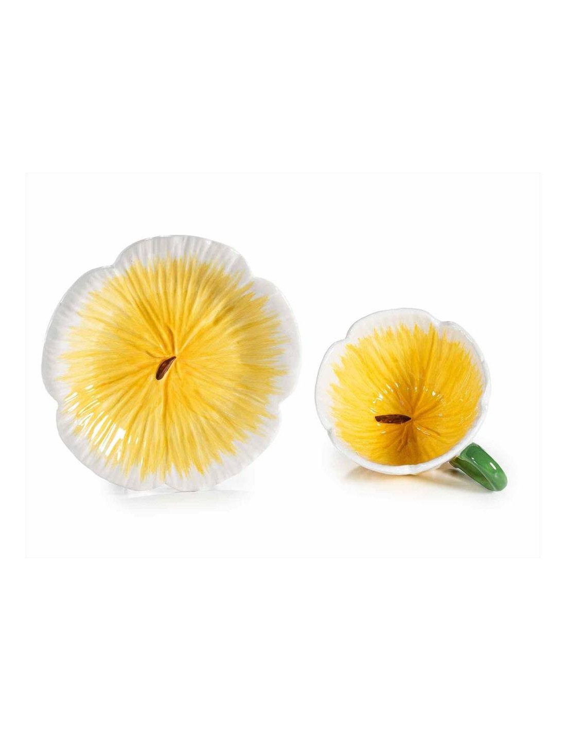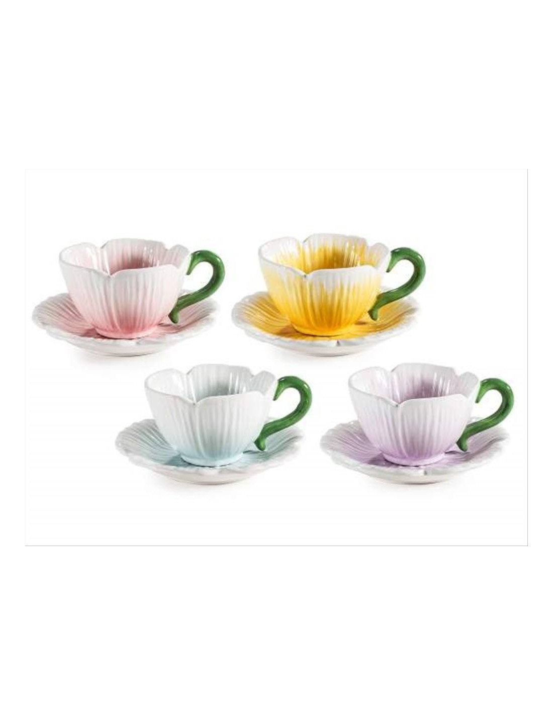 La tazza è accompagnata da uno splendido piattino a forma di fiore, che rende il servizio ancora più delicato e scenografico. Ideale per il caffè del mattino, un tè pomeridiano o una pausa rilassante durante la giornata.