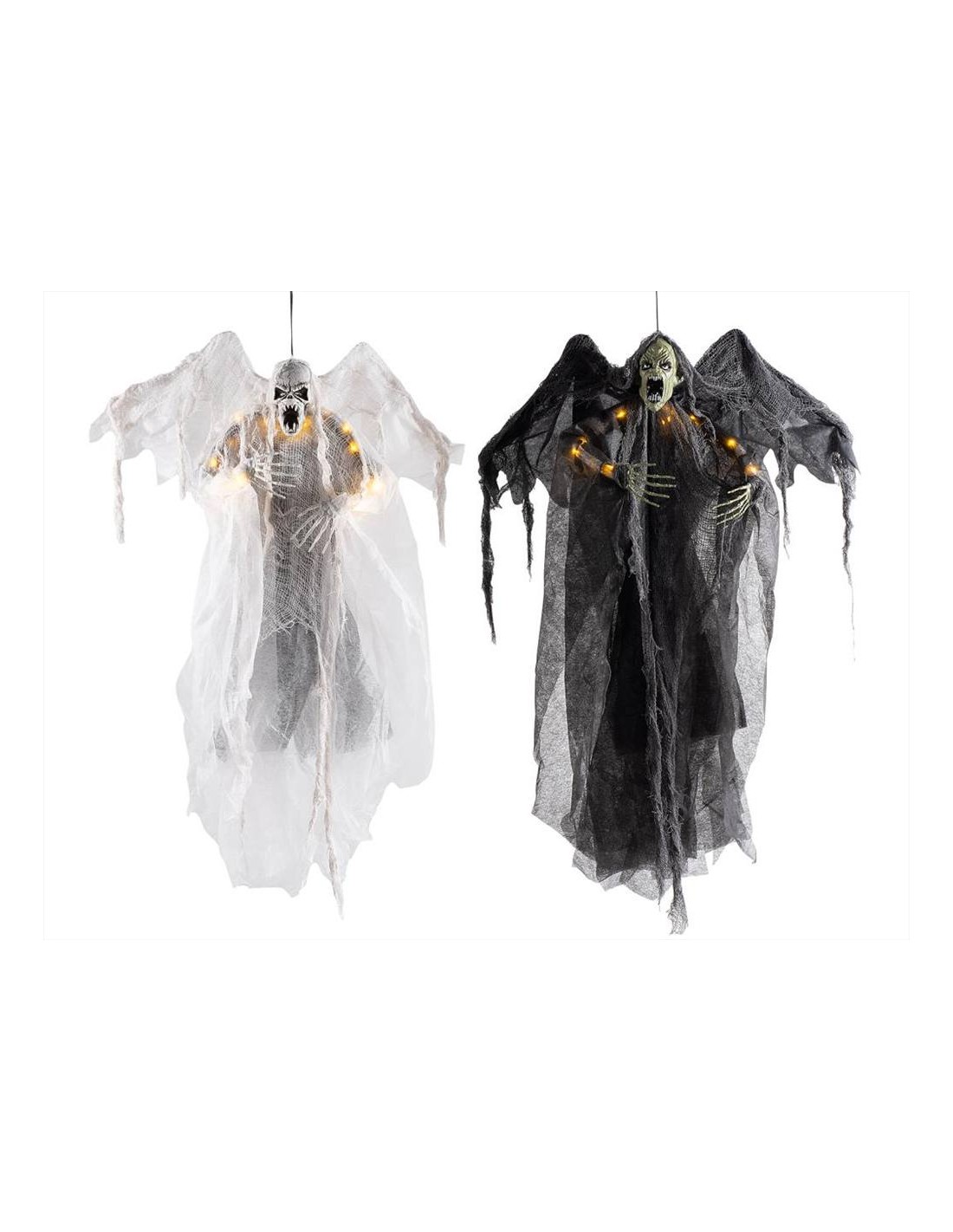 Scegli tra il terrificante Fantasma o lo spaventoso Zombie per decorare il tuo Halloween con questo mostro demoniaco da 90 cm! Questi personaggi non sono solo decorazioni, ma veri e propri spettri della notte con ali e braccia modellabili, pronti a prendere qualsiasi forma che tu decida. Appendili in alto e osserva come le luci nei loro occhi brillano di malvagità, creando un'atmosfera di puro terrore. Perfetti per trasformare la tua casa in una scena da incubo, questi mostri sono l’aggiunta ideale per un Halloween da brivido! (Richiede 2 pile stilo, non incluse) 🕸️🦇