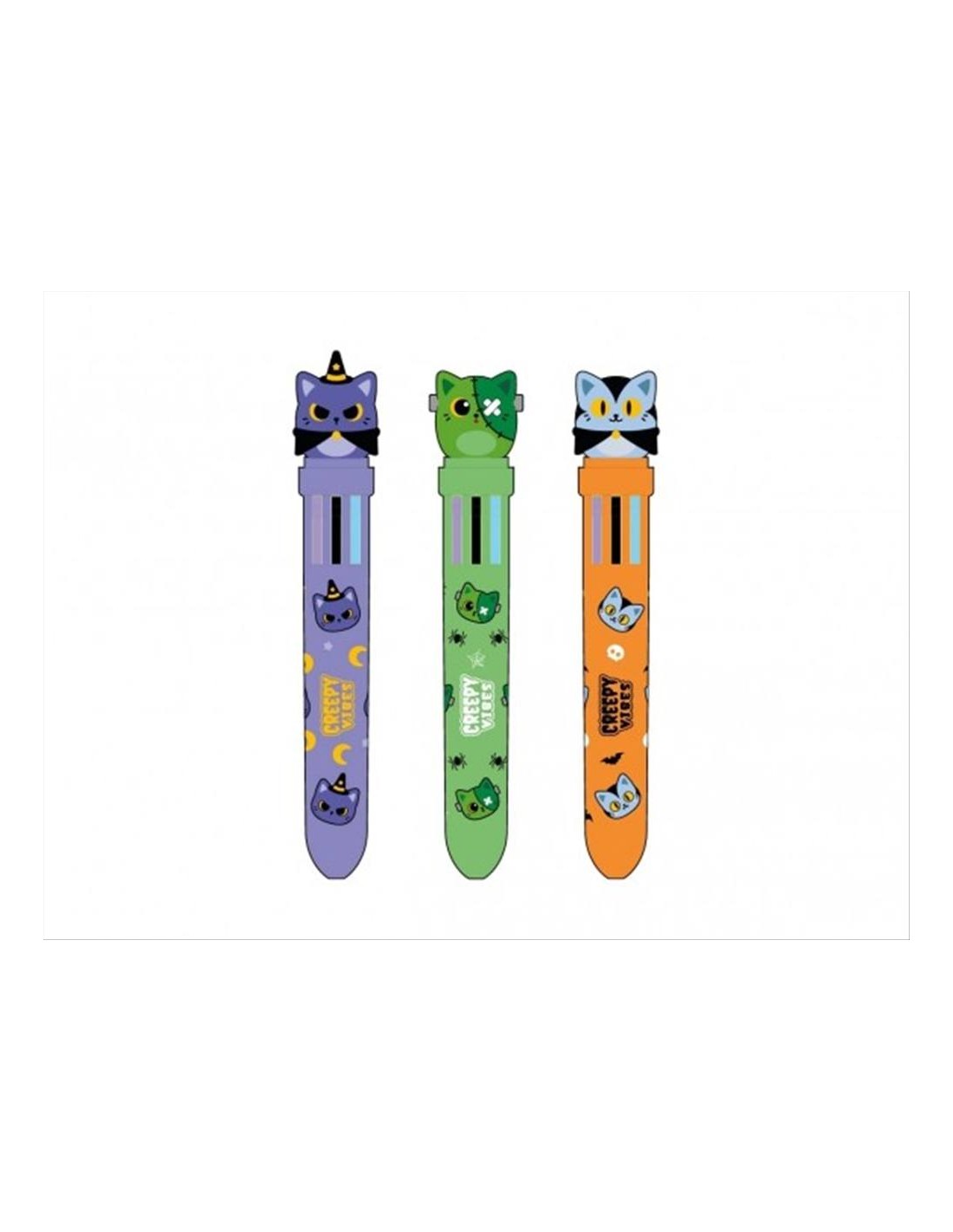 10 colori in un colpo solo 🎃🖊️! Penna CREEPY VIBES iTotal con 3 modelli spettrali: gatto streghetta, gatto zombie e gatto vampiro. H14,5cm!