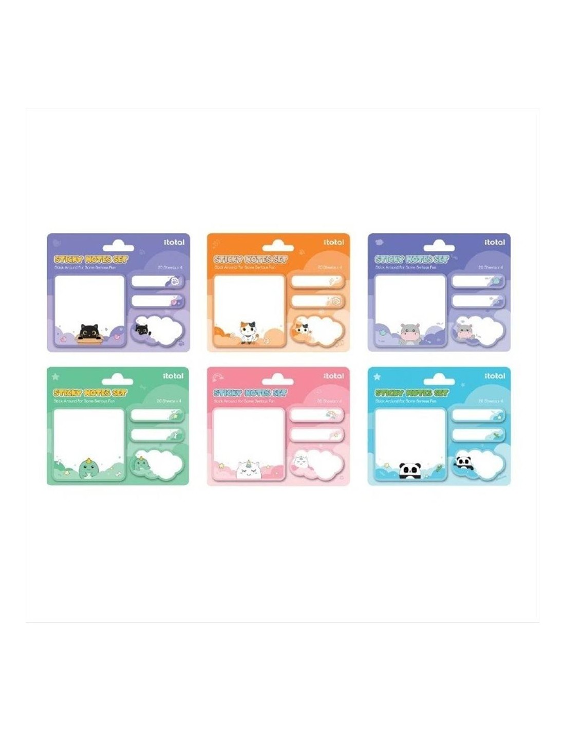 Rendi ogni appunto più allegro con gli Sticky memo Kawaii iTotal, disponibili in 6 modelli adorabili: gatto arancione tricolore, gatto nero, ippopotamo, dinosauro, unicorno e panda. Perfetti per chi ama la cancelleria cute e vuole organizzarsi con un tocco di fantasia.