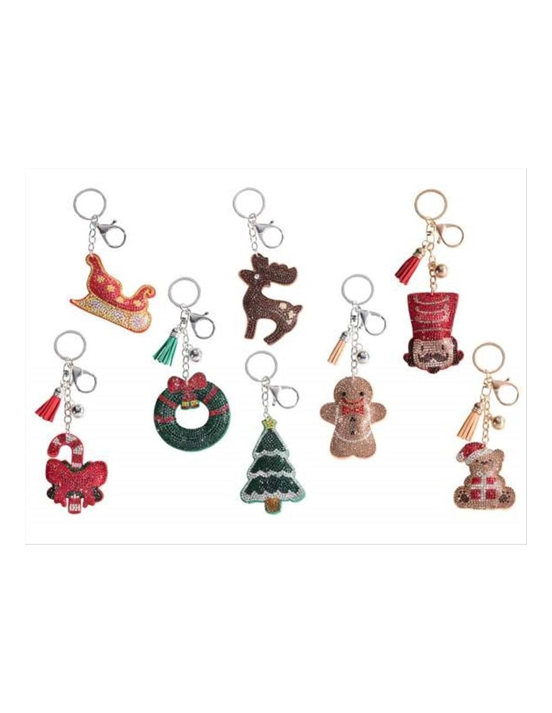 Portachiavi con charm natalizio e strass - 8 varianti (1pz)