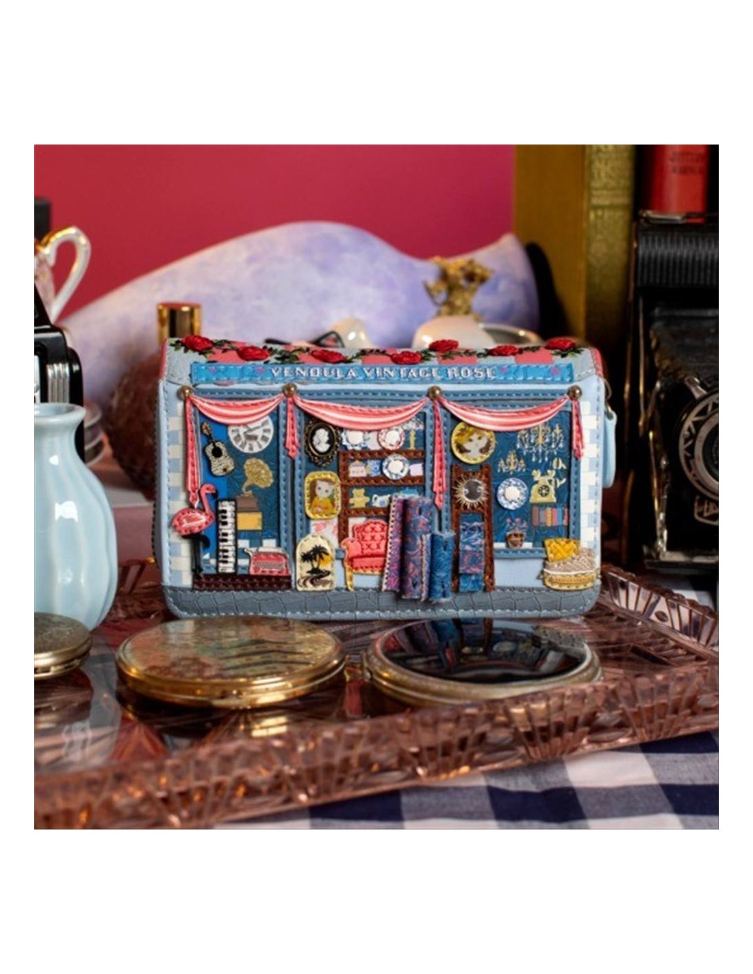 Il Portafoglio Medio Vintage Rose di Vendula London è l’accessorio perfetto per chi desidera un mix di stile, praticità e fascino retrò! 🌹💖 Realizzato in pelle vegana con stampe vivaci e dettagli in rilievo cuciti a mano, si abbina perfettamente alla tua borsa Vintage Rose. Compatto e organizzato, è ideale per ogni borsa, senza rinunciare alla capienza.