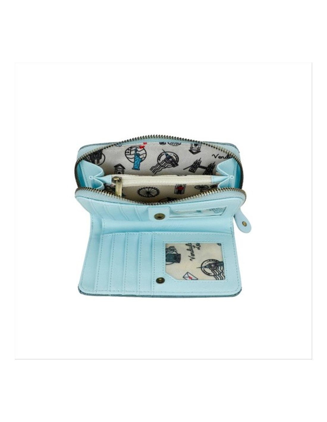 per carte, 1 tasca con zip per monete, 2 sezioni pieghevoli per banconote.