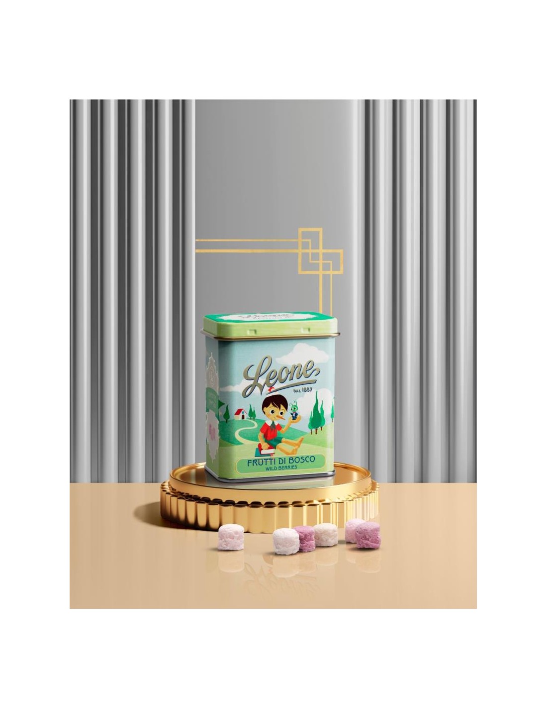 Ogni lattina contiene le classiche pastiglie Leone, realizzate con la ricetta originale del 1857, composte al 96% da zucchero a velo purissimo, con aromi naturali, senza glutine, senza coloranti artificiali e adatte a una dieta vegan.
