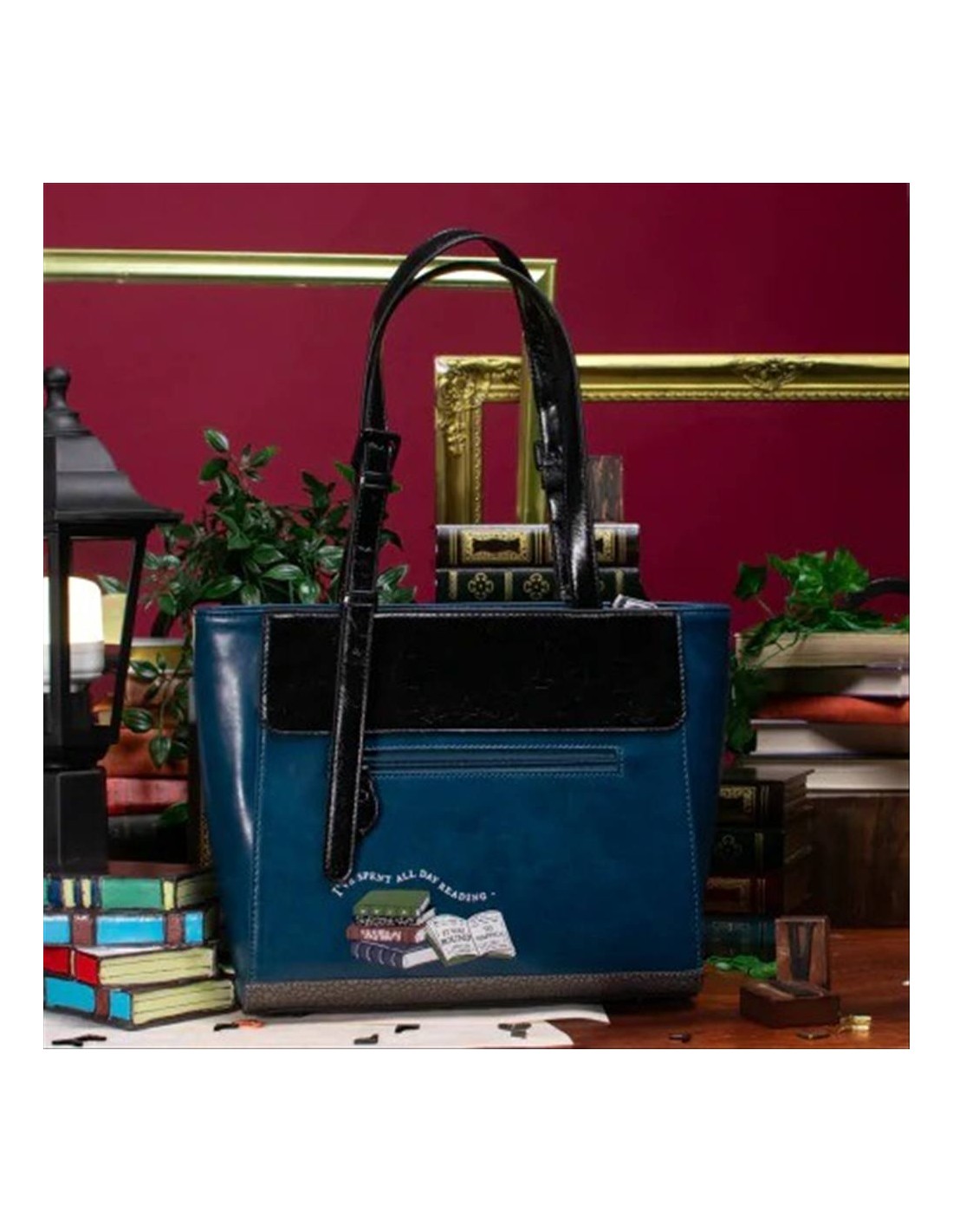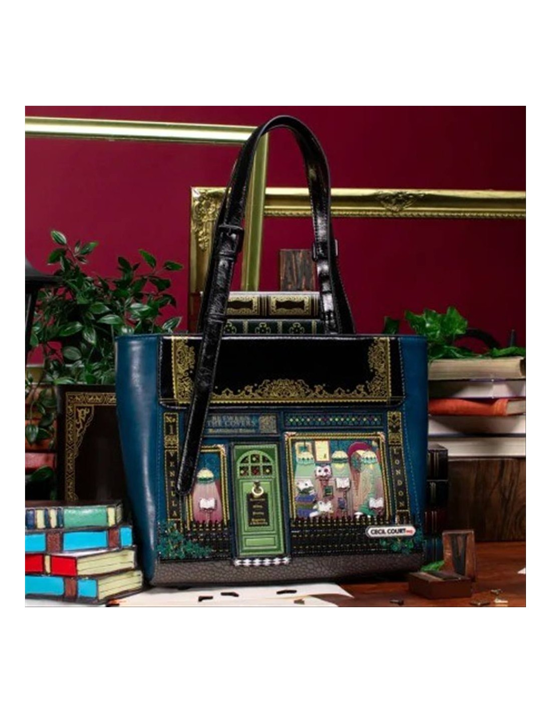 La Borsa Shopper Between the Covers Bookbinders è perfetta per trasportare il tuo libro preferito, un tablet, un blocco notes e tutto ciò che ti serve quotidianamente. I manici lunghi e regolabili si appoggiano comodamente sulla spalla e ha piedini alla base per tenerla dritta e pulita. Il motivo dai magnifici dettagli include edera ricamata, un cartello stradale sagomato e una vivace vetrina di libri: solo alcune delle caratteristiche che faranno presto di questa borsa la tua preferita.