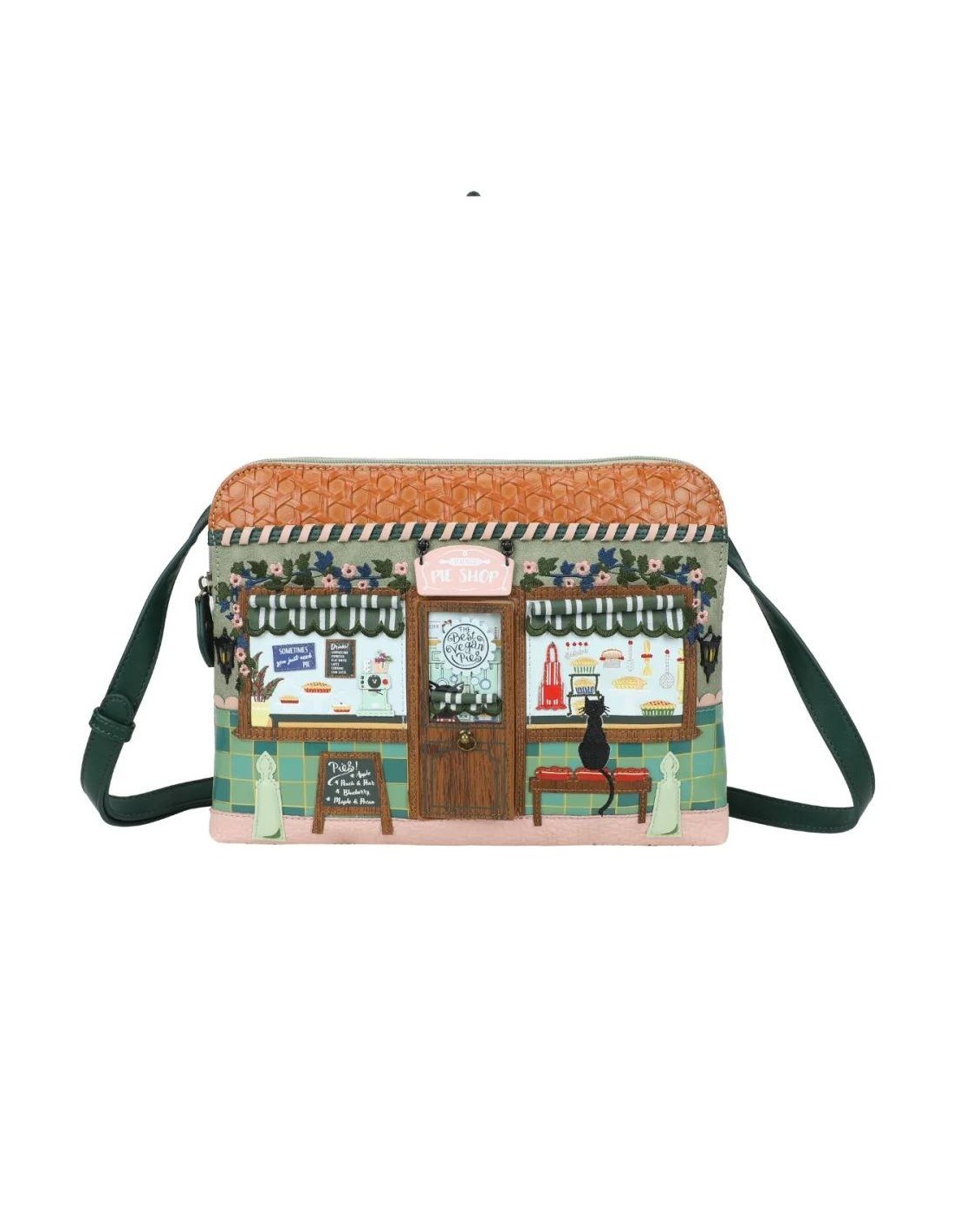 La Borsa Bella Vendula Pie Shop è dotata di due scomparti con zip, una tracolla regolabile e un design ispirato a una pasticceria che ti farà venire l’acquolina in bocca. Realizzata in pelle vegana, ha deliziosi dettagli stampati e applicati, come tende in tessuto, pareti piastrellate e torte irresistibili. Che tu sia in giro per delle commissioni o che ti goda una passeggiata, questo allegro accessorio renderà sicuramente la tua giornata, e il tuo look, più luminosi.