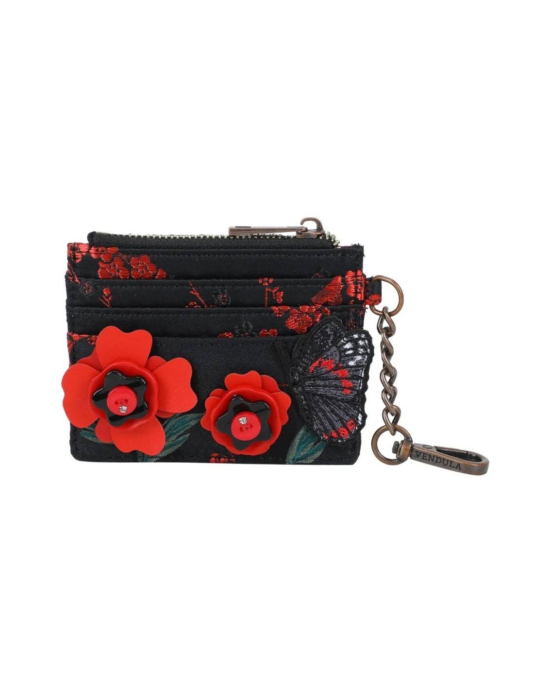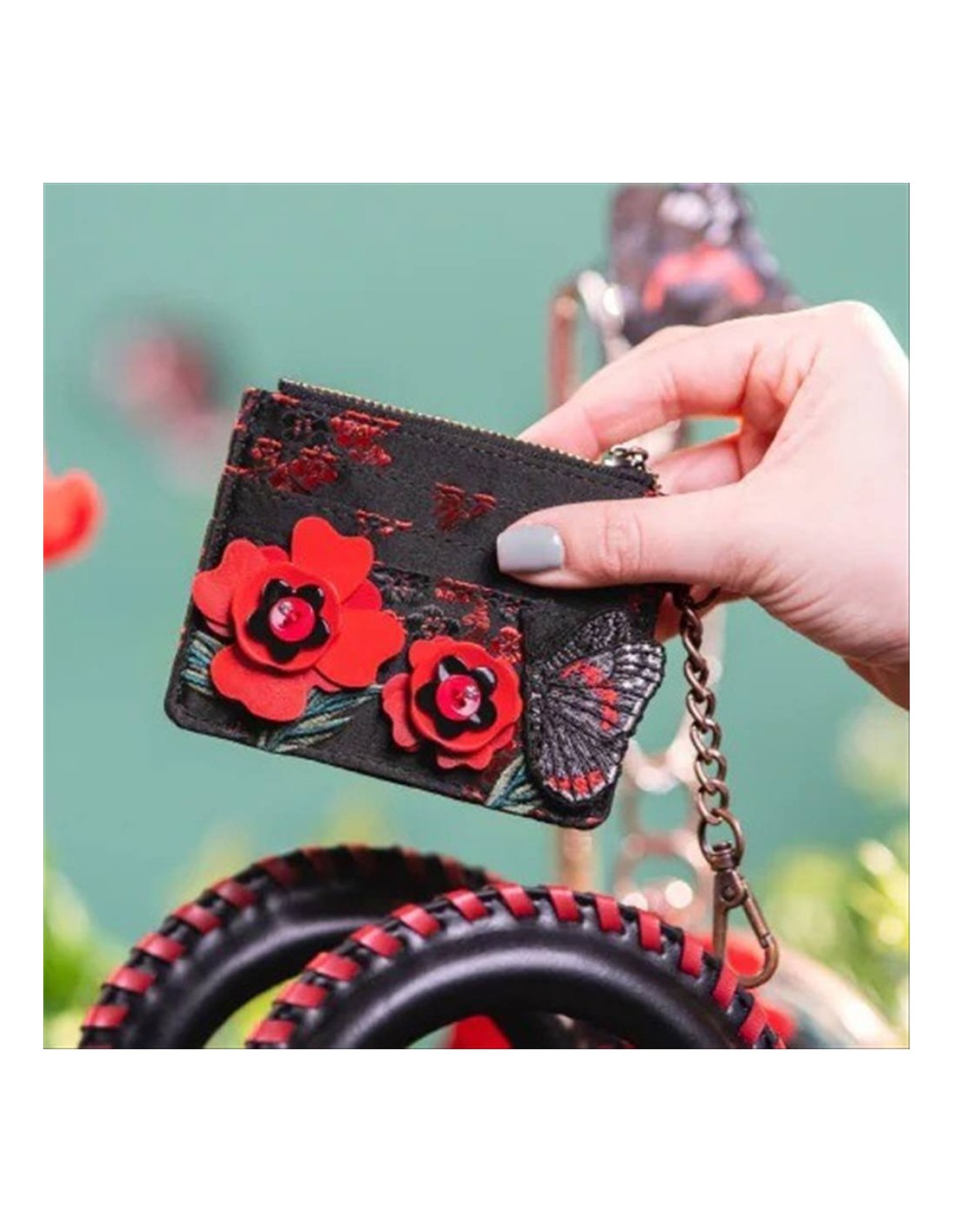Il Portabiglietti Butterfly Garden offre sia funzionalità che stile! Realizzato in pelle vegana, questo accessorio piccolo ed elegante si può infilare facilmente in qualsiasi borsetta e presenta diversi scomparti per carte di credito, una tasca con zip per monete e una catenella per agganciarlo alla tua borsa Butterfly Garden e tenerlo al sicuro. Con i suoi papaveri 3D ultrarealistici, una farfalla di sicuro effetto e il sontuoso rivestimento floreale, si abbina perfettamente alla tua borsa e alla custodia del tuo telefono. Sei pronta a completare la collezione? Questo gioiellino è il tocco finale che darà vita al tuo giardino.