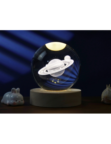 Questa lampada decorativa dal design unico riproduce l’affascinante profilo di Saturno inciso all’interno di un elegante globo trasparente. Una volta accesa, la sfera emette una luce soffusa e suggestiva che illumina con delicatezza l’ambiente, creando un’atmosfera magica e rilassante.