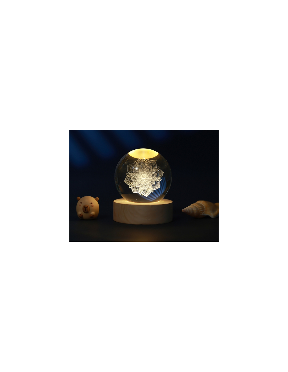 Lampada Sfera Mandala iTotal con luce LED e base in legno. Decorativa e rilassante, disponibile in 3 formati.