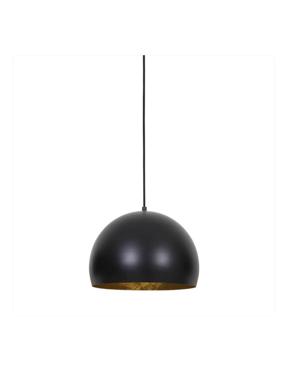 Lampada a sospensione in metallo nero opaco ed interno oro per uno stile industrial e moderno. Adatto a soggiorno, cucina open space o locali.