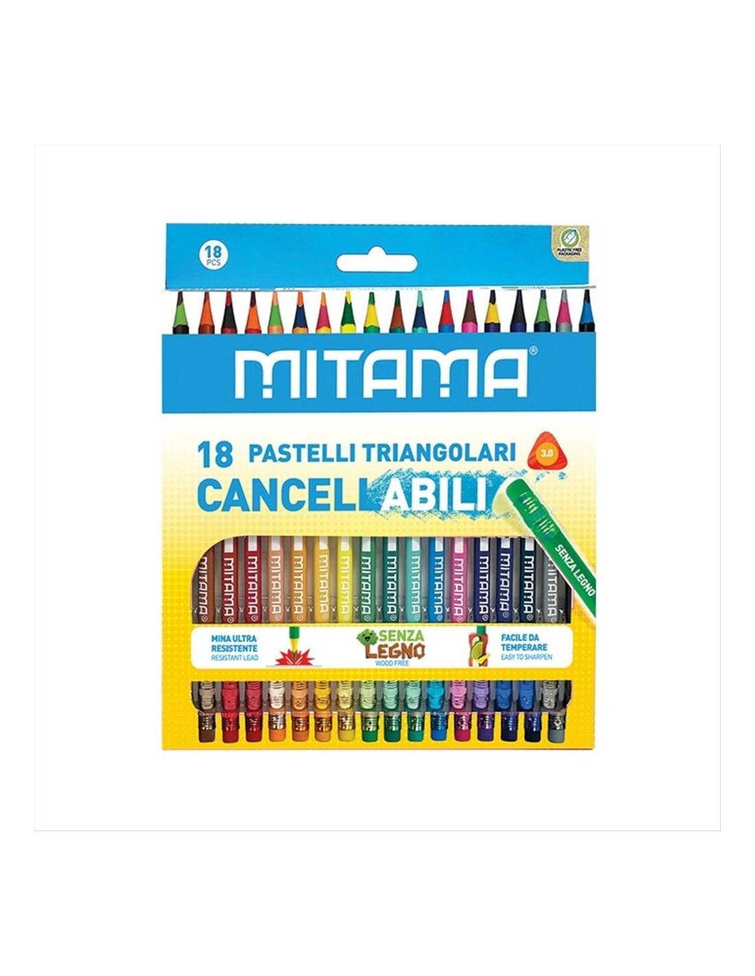 Pastelli Cancellabili Triangolini con Gomma- Blister 18pz Mitama