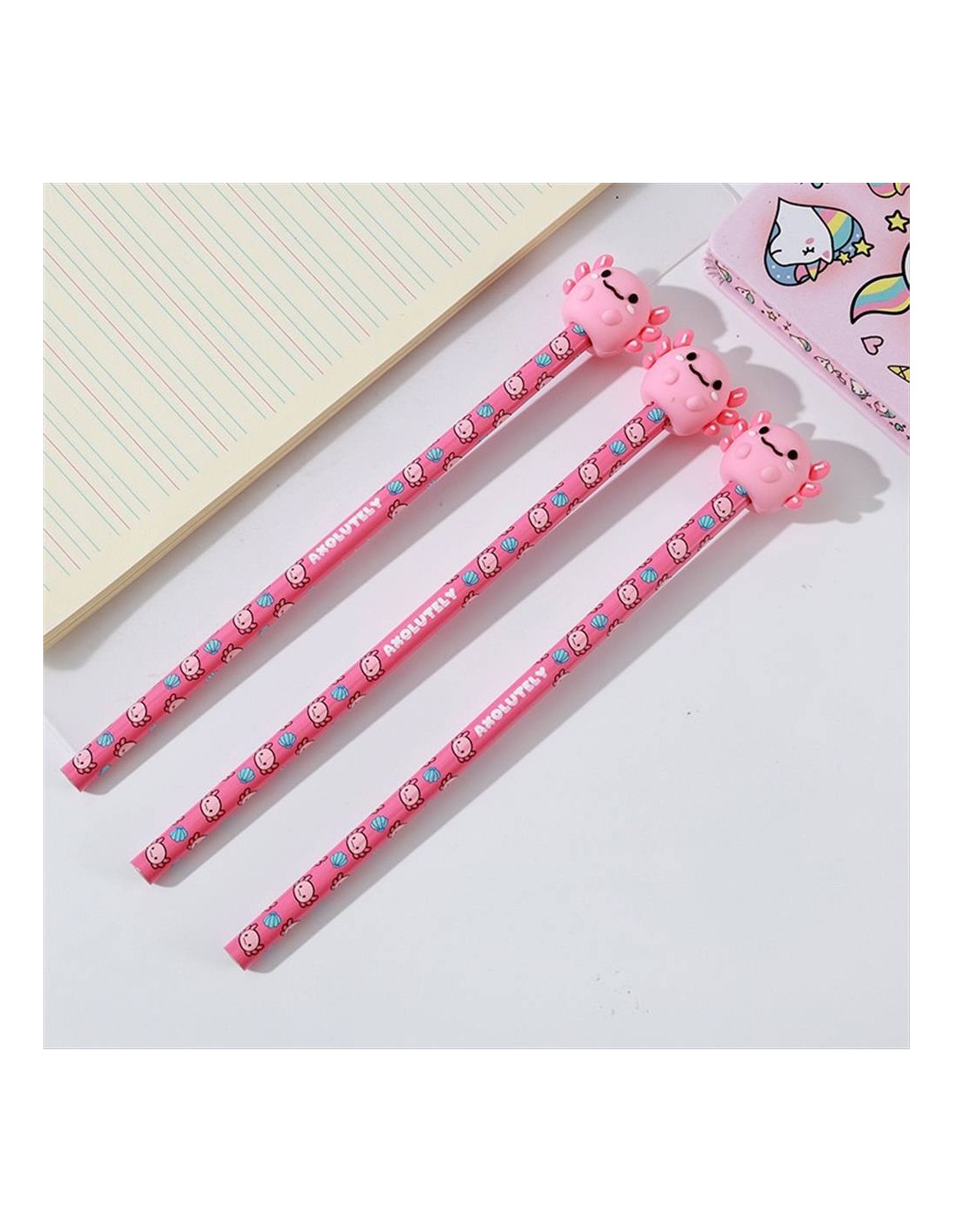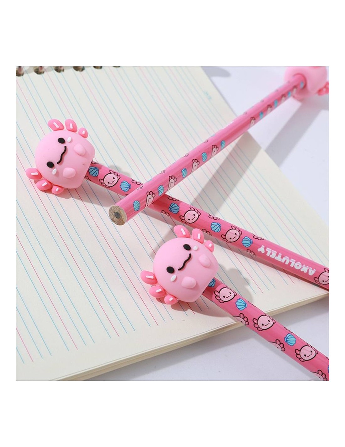 La parte superiore presenta un axolotl 3D super dolce, con codina, branchiette e un’espressione che fa sciogliere il cuore. La matita è comoda da impugnare, perfetta per scuola, università, ufficio o per chi ama arricchire la propria scrivania con dettagli tenerissimi.