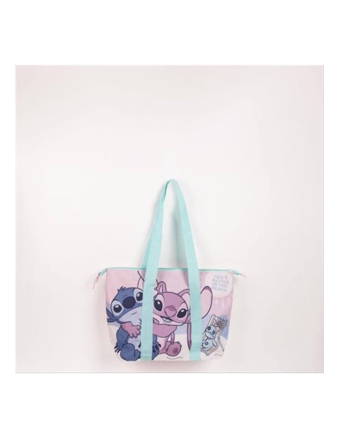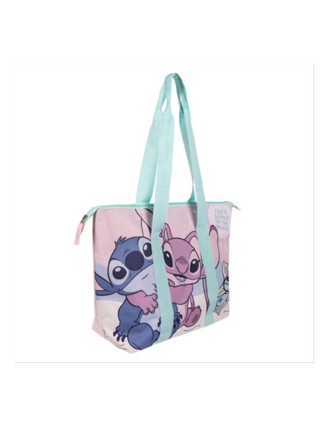 Il design simpatico e colorato con Stitch porta allegria e freschezza a ogni tua giornata al mare, mentre i manici resistenti ti permettono di portarla comodamente ovunque tu vada. Leggera e capiente, è il compagno perfetto per goderti il sole con stile.