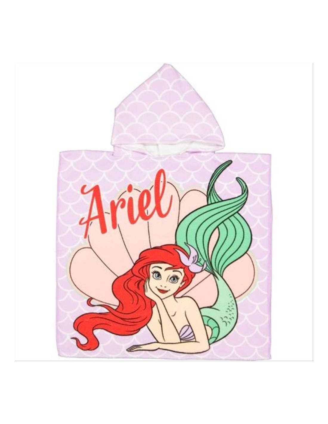 Scopri il poncho mare Ariel delle Principesse Disney! Misura 60x120 cm, è in tessuto a rapida asciugatura, realizzato al 50% con poliestere riciclato.