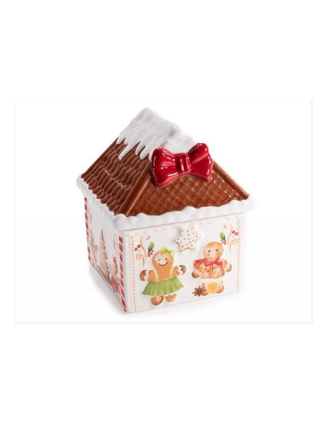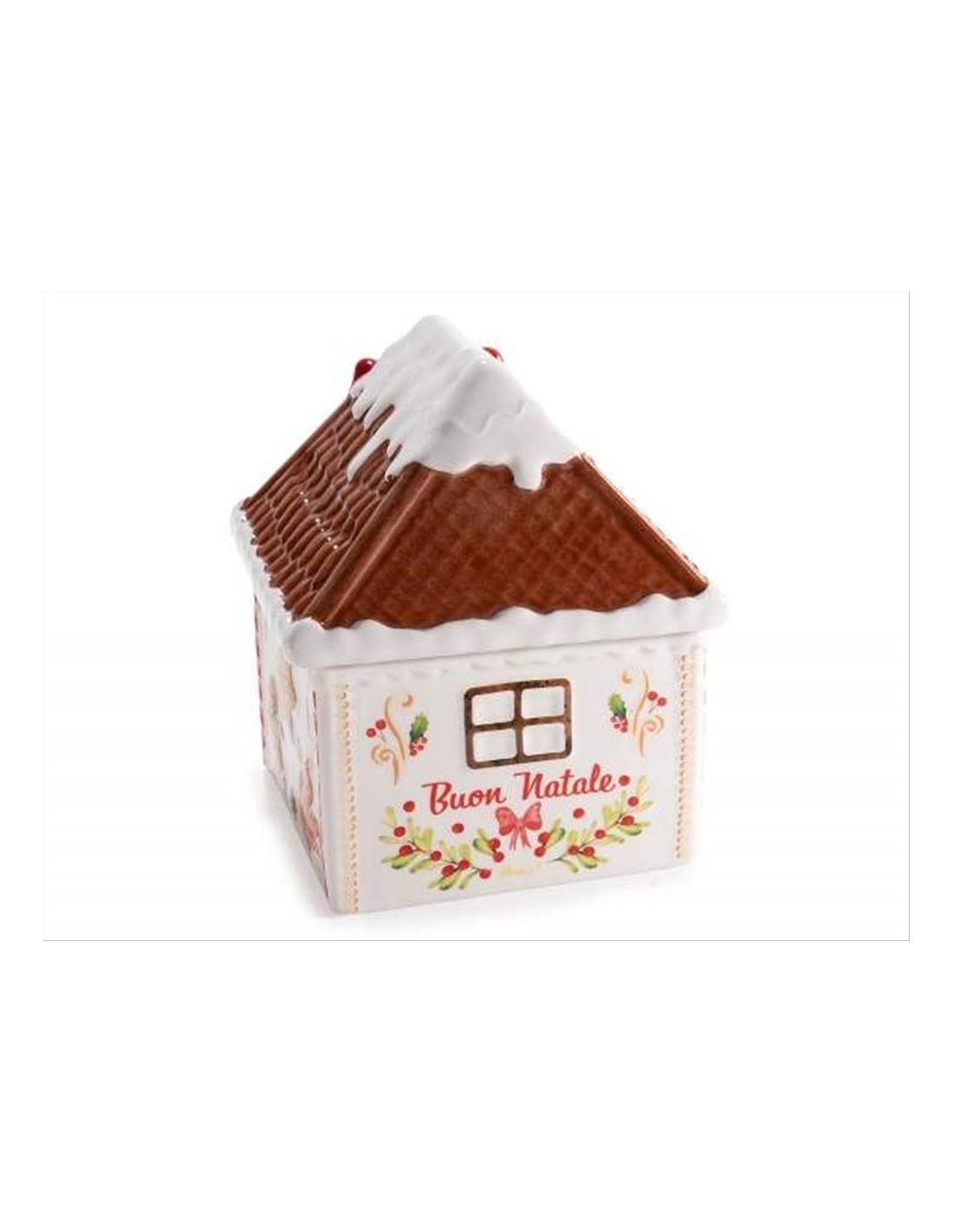 Barattolo natalizio in ceramica Casetta di Marzapane H16cm
