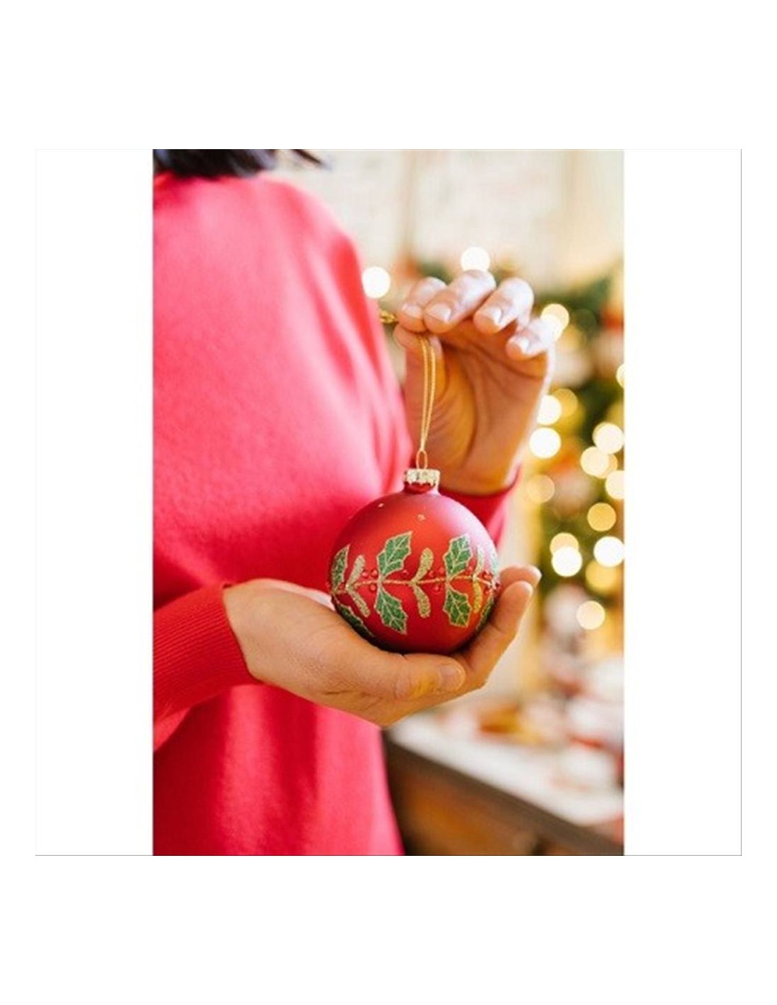 Porta la bellezza del Natale con la pallina di vetro decorata con agrifoglio verde, rosso e oro. Un tocco festivo per il tuo albero! Porta fortuna! 🎅💖